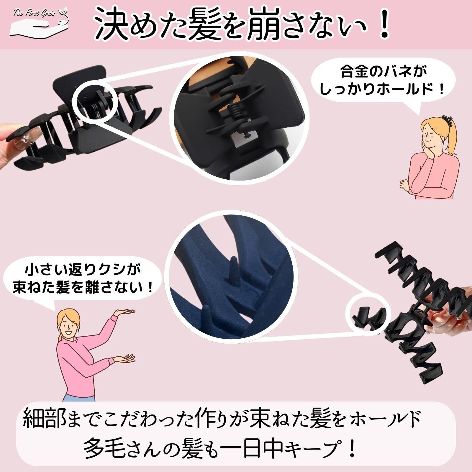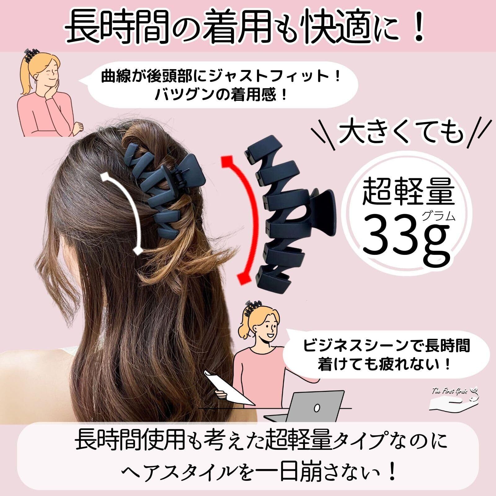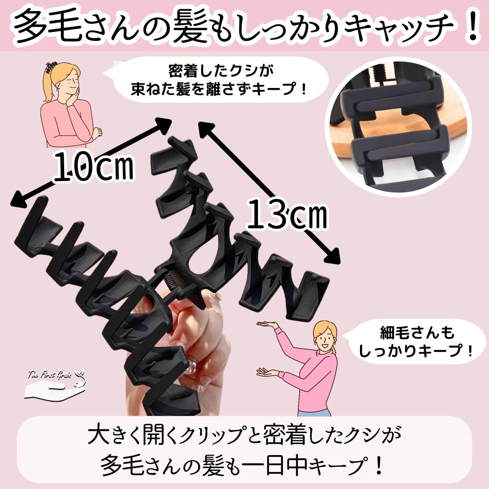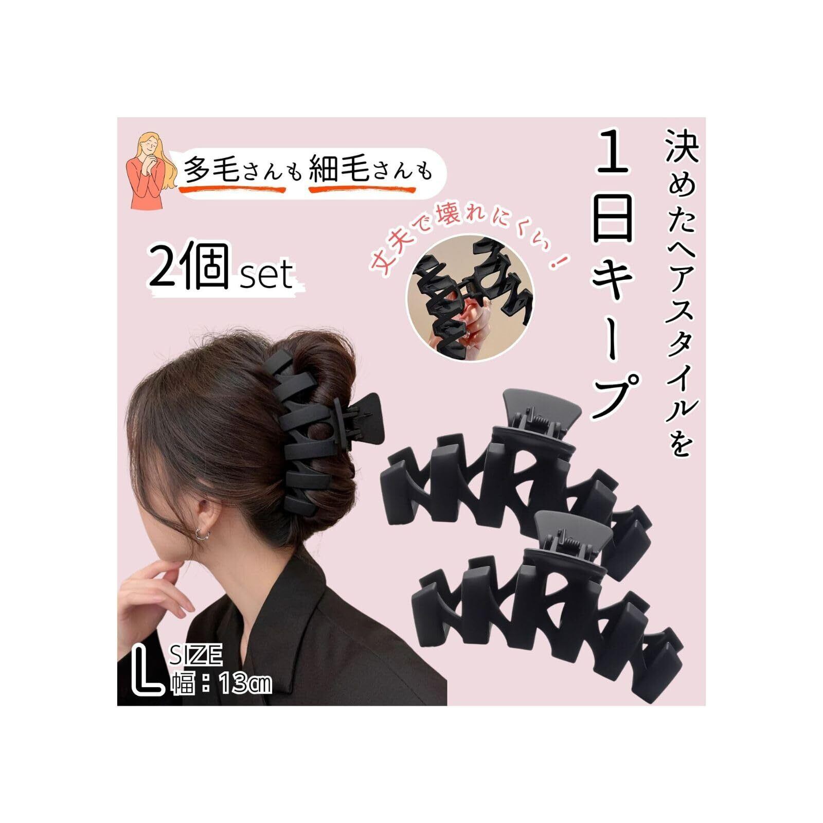 TheFirstGrain ヘアクリップ しっかりとまる 毛量多め 大きめ バンスクリップ 髪留め クリップ ブラック 2個入 (艶消ブラック, L)