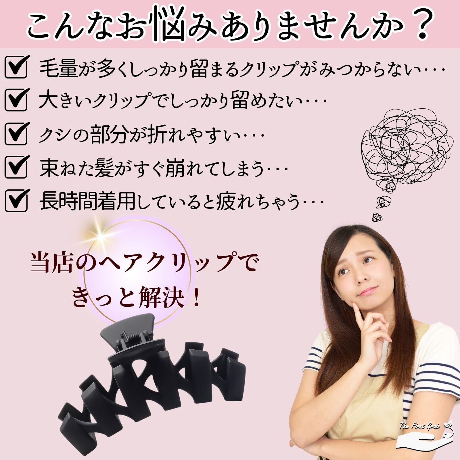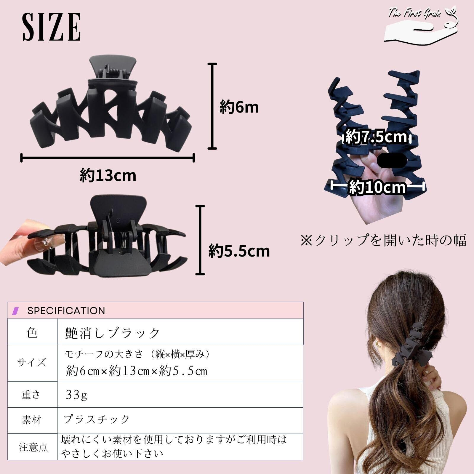 【特価セール】TheFirstGrain ヘアクリップ しっかりとまる 毛量多め 大きめ バンスクリップ 髪留め クリップ ブラック 2個入 (艶消ブラック, L)