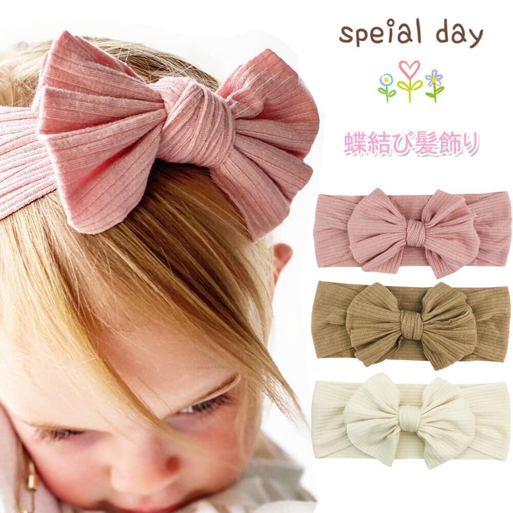 【可愛い】蝶結びやのデザインで、赤ちゃんのかわいさをよく引き立てます。3色、服装によってお子様にそれぞれのヘアバンドを付けておしゃれ感たっぷり!