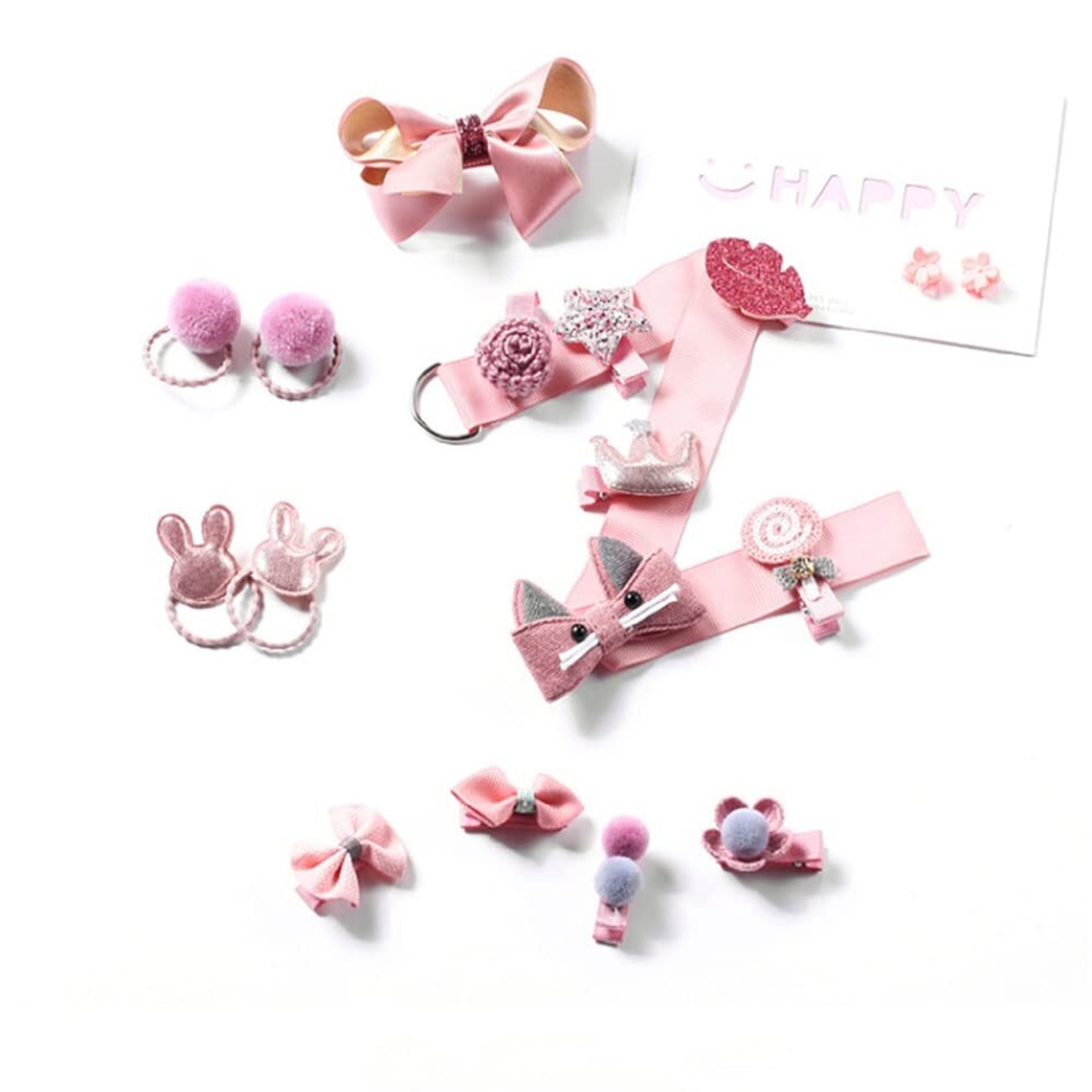 【かわいいデザイン】リボン、花、ウサギ、キャンディ、クラウンの大人気デザイン&デコレーションから選べるヘアアクセサリーセットです。