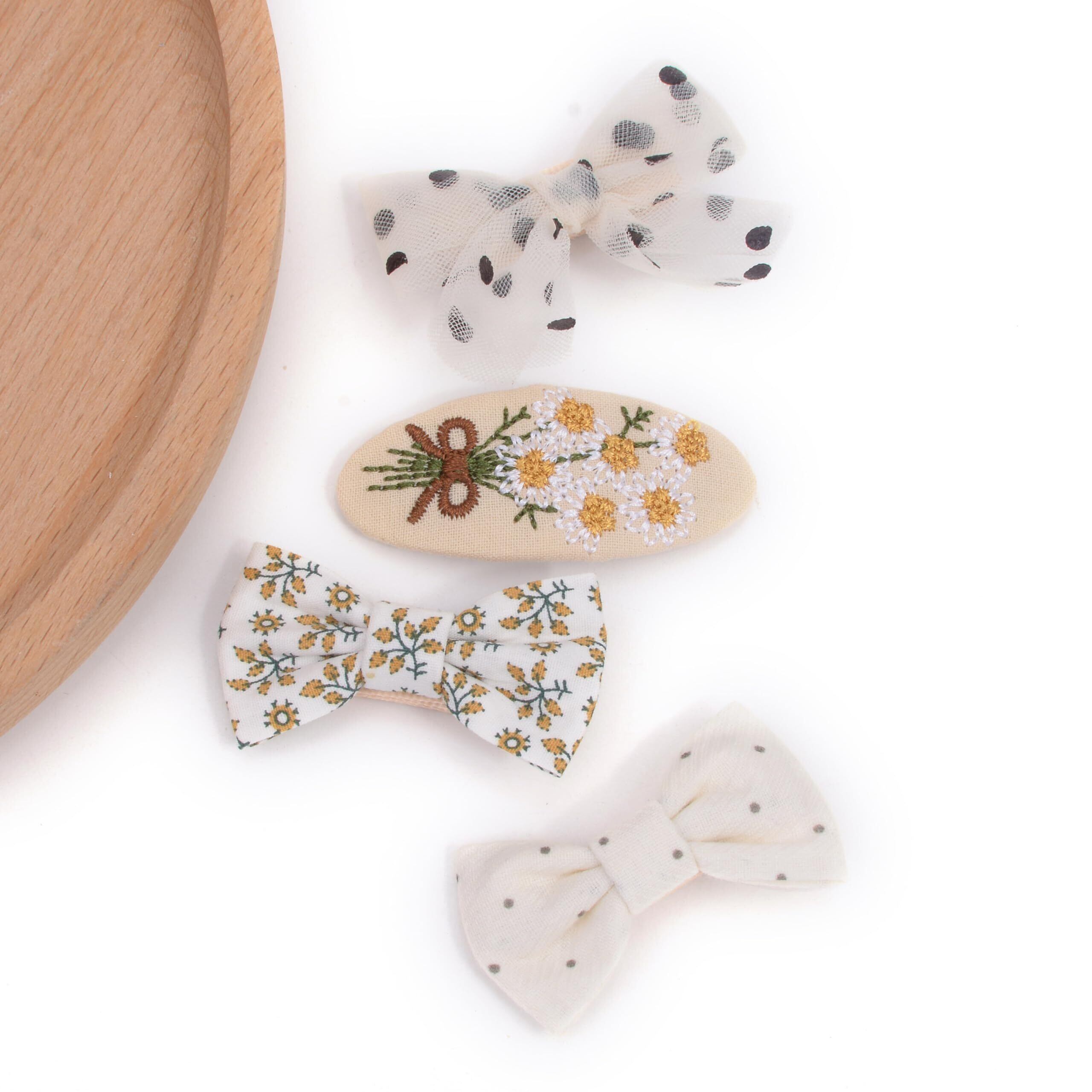 コットン・リネン素材のかわいいヘアクリップです。