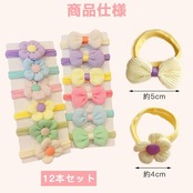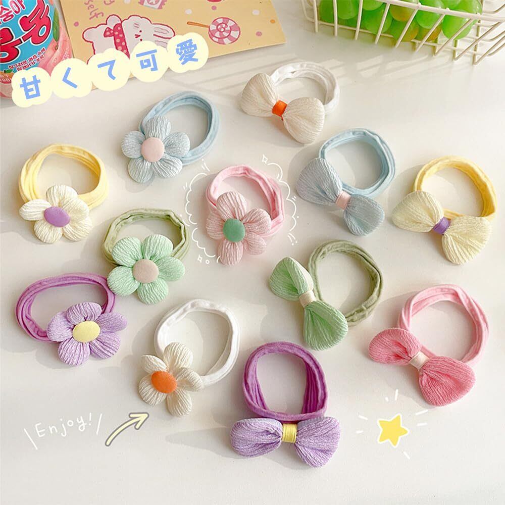 ESJNNK ヘアゴム 子供 12本セット 蝶結び 花 髪飾り カラフル 可愛い おしゃれ 絡まらない 髪ゴム 女の子 ベビー キッズ リボン ヘアアクセサリー 保育園 幼稚園