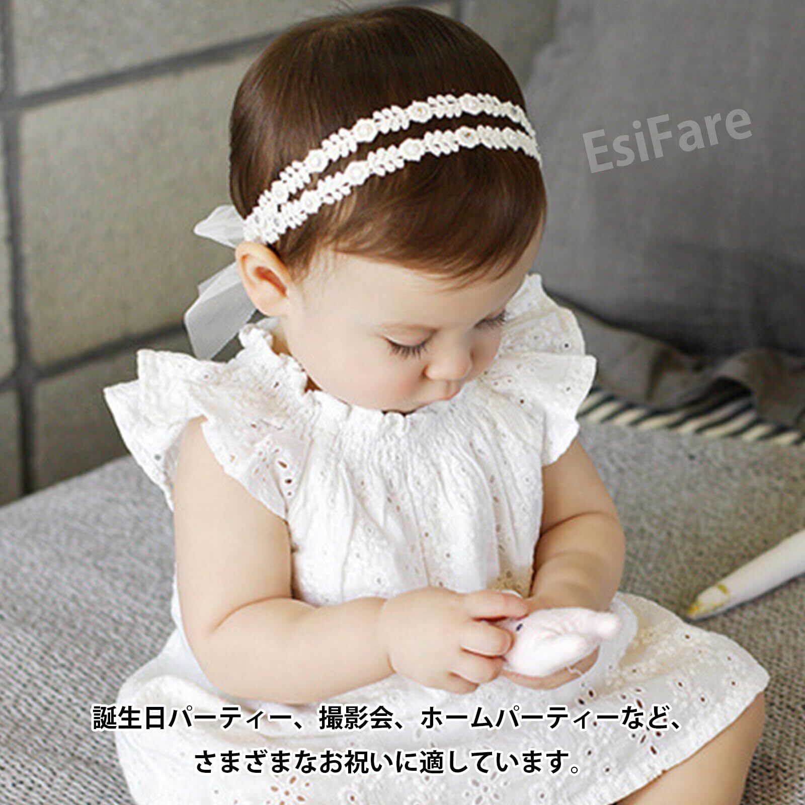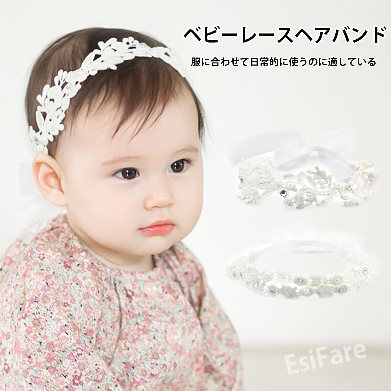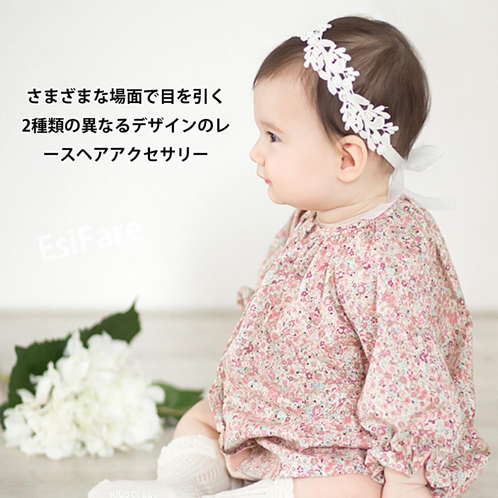 【新着商品】EsiFare ヘアバンド キッズ 女の子 ヘアアクセサリー 2本入り キッズヘッドバンド レース 女の子 髪飾り おしゃれ かわいい 子供カチューシャ ヘッドドレス レース 花 ヘアアクセサリー 出産祝い お祝い 誕生日 記念日 月齢フォト ニューボーンフォト 白 レースバンド