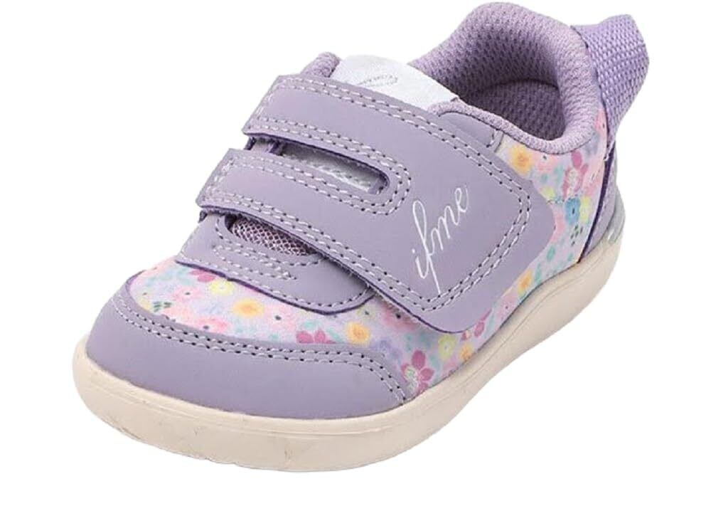 子供たちの足を考えた、さまざまな健康機能と、可愛らしいデザインを兼ね備えた、「IFME」のベビーシューズ。幼児の歩きは、「着地」、「すぐ蹴り出し」、とツーステップです。そんなヨチヨチ歩きをサポートするベビーシューズです。大きく開くベルト・ベロ構造になっているので、履かせたり脱がせたりが楽々です。小さなお子様のお出かけに、たのもしい味方です。【ウインドラスソーサ】(土踏まずのアーチ形成を助ける中敷):先端の2箇所のくぼみで、足指を曲げ伸ばしやすくし、足底筋膜を緊張させ、自然と土踏まずを鍛えられる効果があります。【アウトサイドストラップ】脱ぎ履きしやすいように、ぐっと、かかと部分を引っ張れるように外側にストラップを付けました。【軽量ソール】柔らかくて、強度もあるのに、軽量な素足のような履き心地のソール