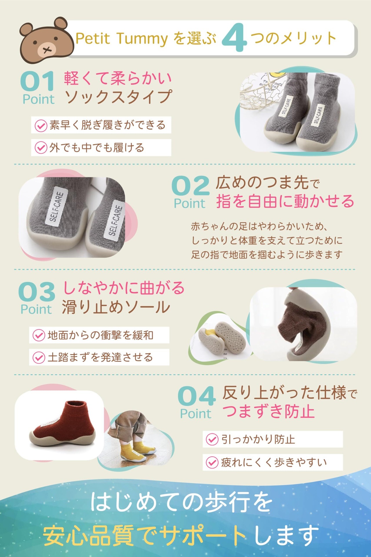 [Petit Tummy] 公式【医師監修】 ファーストシューズ ベビースニーカー ベビー スニーカー 滑り防止 室内履き 室外兼用 ベビーシューズ ソックスシューズ 赤ちゃん 男の子 女の子 ルームシューズ【三児のママ保育士推奨】
