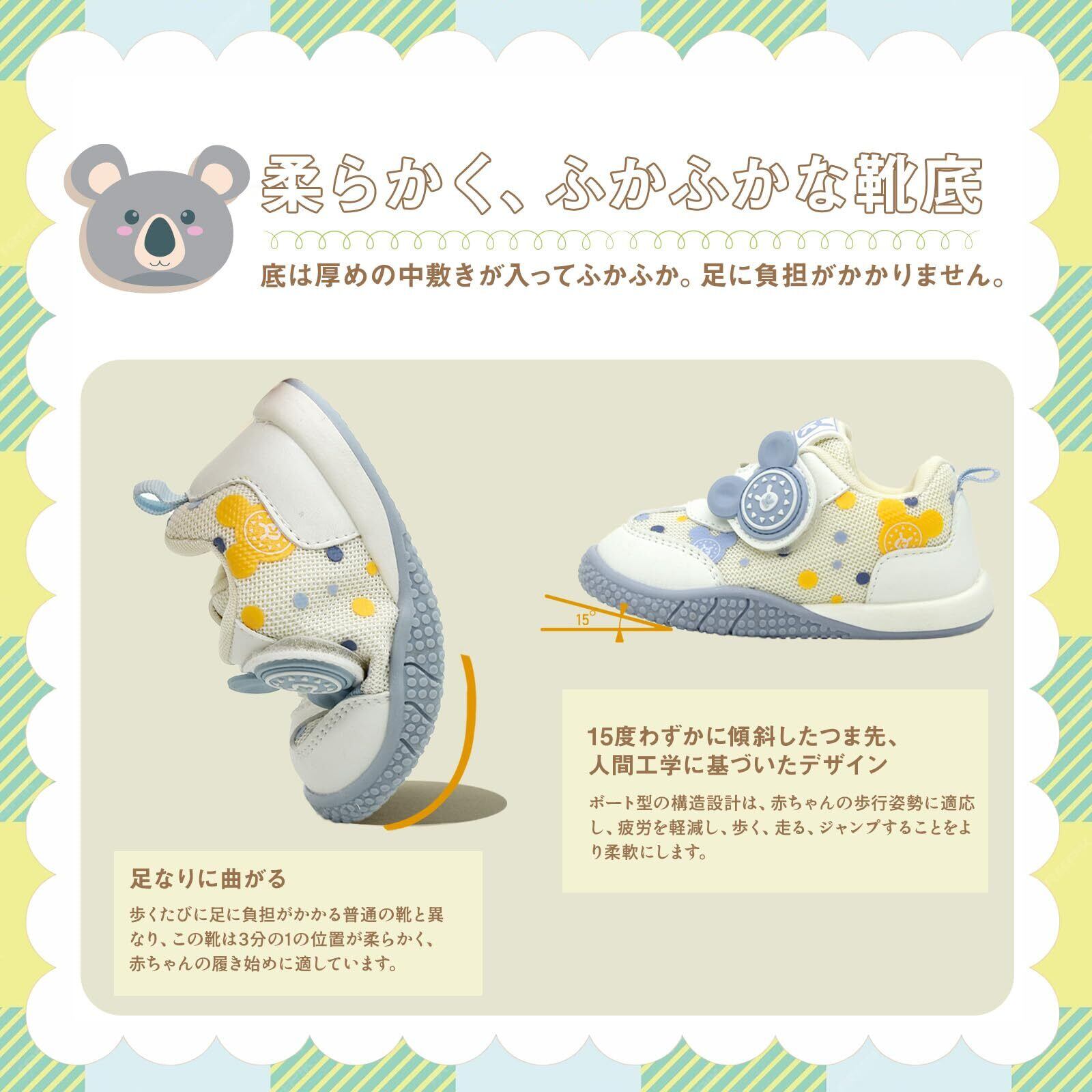 [HAYAHARU] ベビーシューズ ベビー靴 赤ちゃん 靴 ファーストシューズ スニーカー 柔らか 歩き始め 男の子 女の子 幼児 キッズ 子供靴 運動靴 甲高 オールシーズン 入園 入学 保育園 幼稚園 かわいい くまちゃん