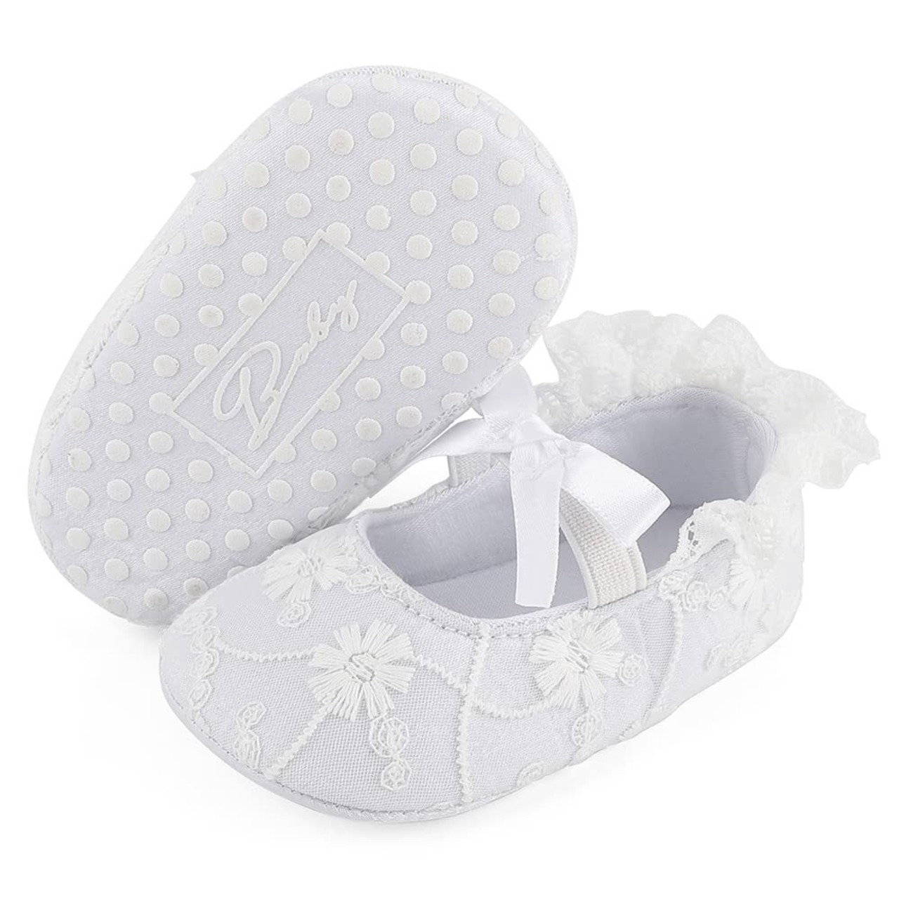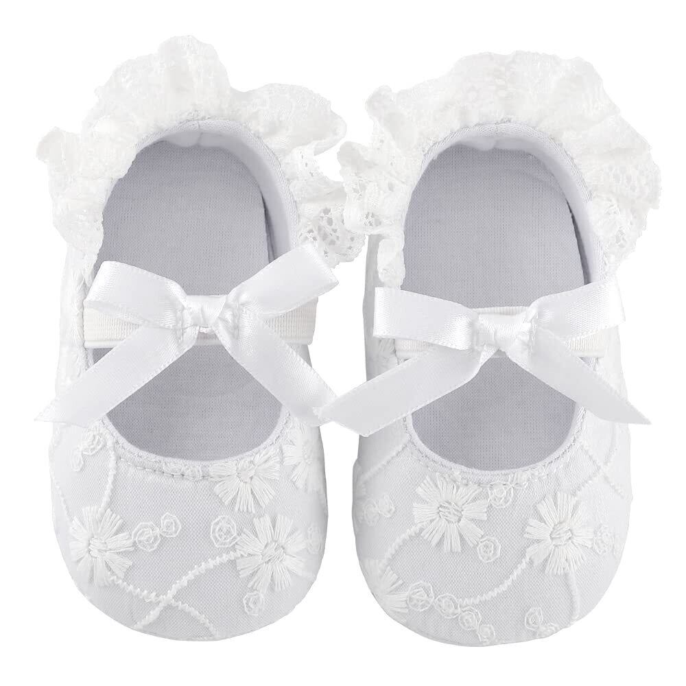 [LACOFIA] ベビーシューズ リボン 女の子 ファーストシューズ ドレスシューズ フォーマルシューズ レース フラット 滑り止め 超軽量 結婚式 出産お祝い プレゼント 幼児