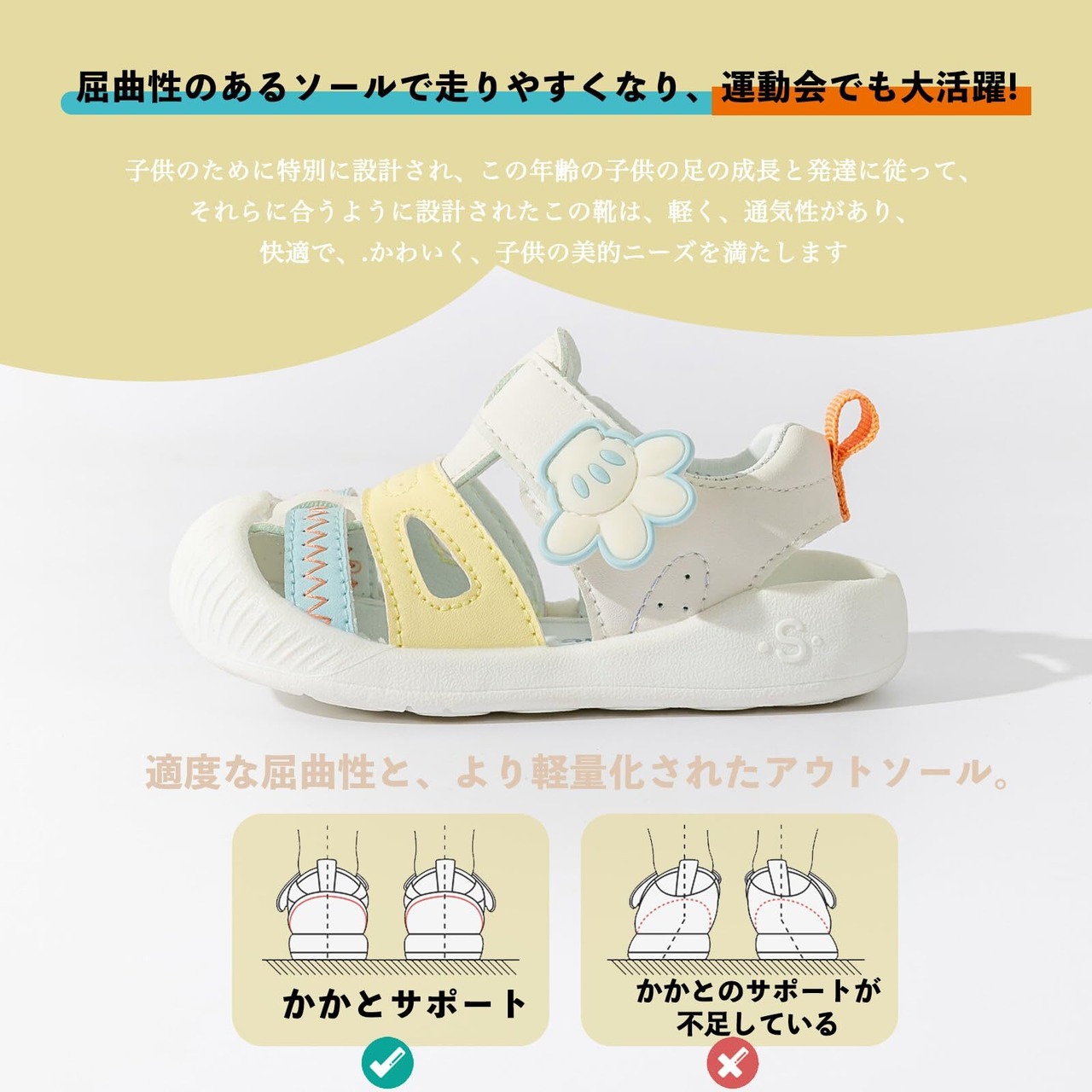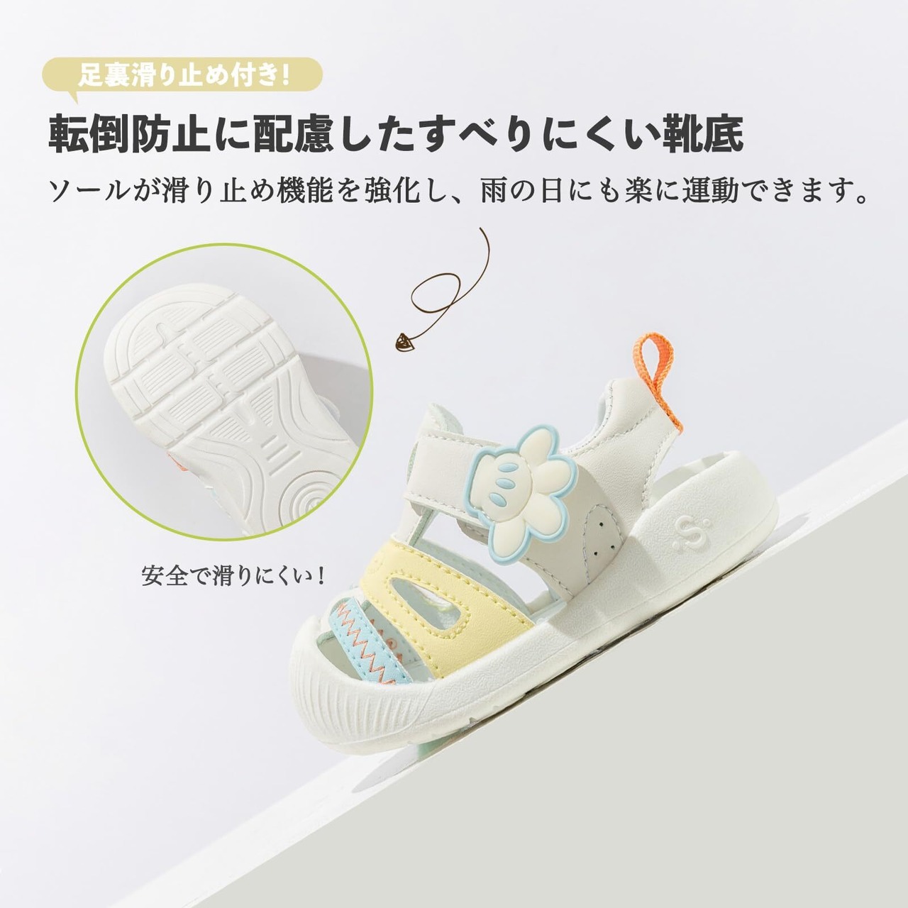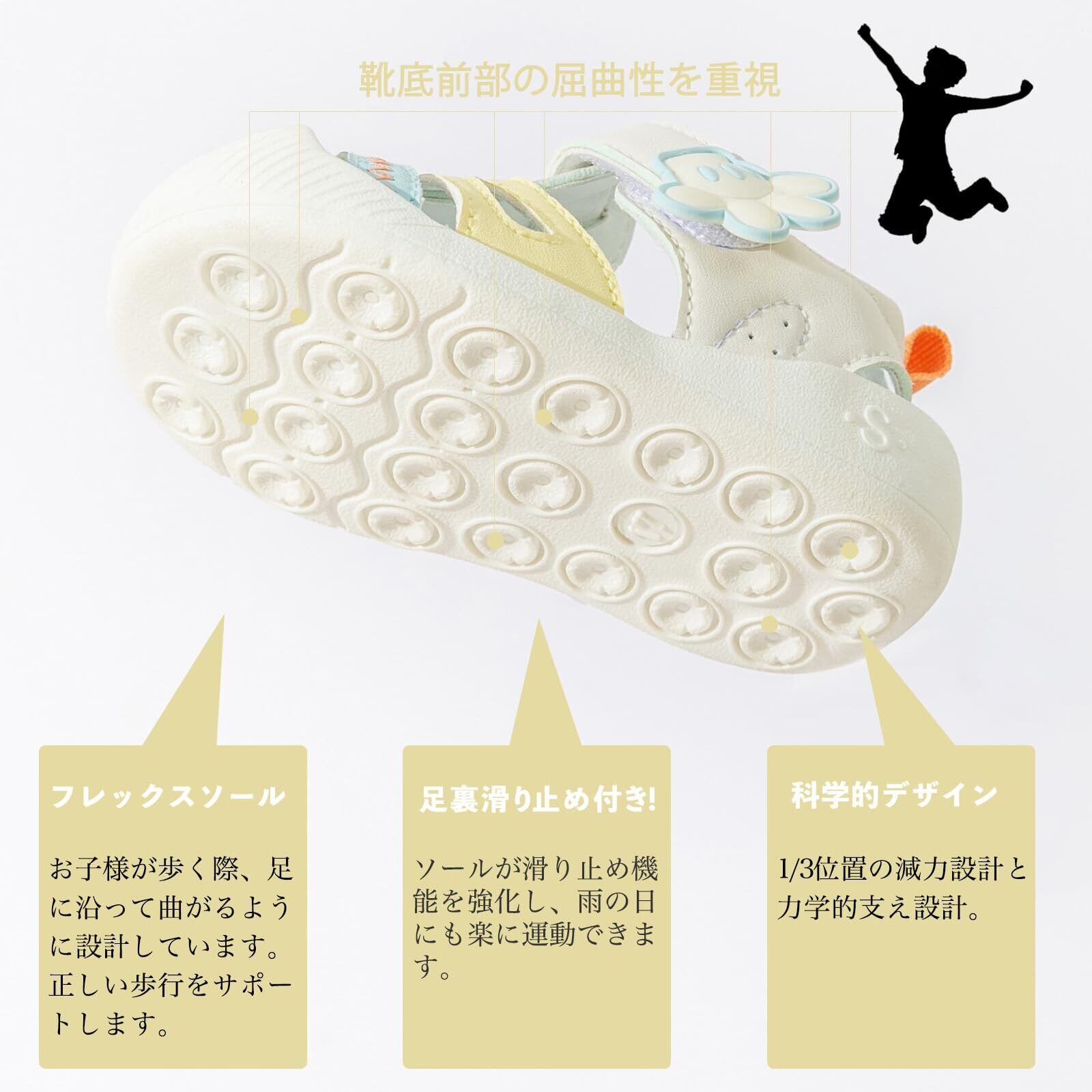 【着脱簡単】バンドが大きく開き、バンドを開いたときも戻ってこない構造で、ママ・パパが履かせやすいのはもちろん、お子様が自分で履きやすい構造です。着脱が簡単に出来て、子供にとって楽に履きやすいです。優れたゴム製のソールは耐磨性が抜群で、柔軟ですし、凹凸の溝があり、滑り止めも優れています。機能性や履き心地だけではなく、子どもたちのおしゃれ心も満たしてくれそうなのベビーシューズです。通園はもちろん、遊びなどさまざまなシーンで活躍してくれるので、お子様やお孫様のプレゼントにも最適です 。