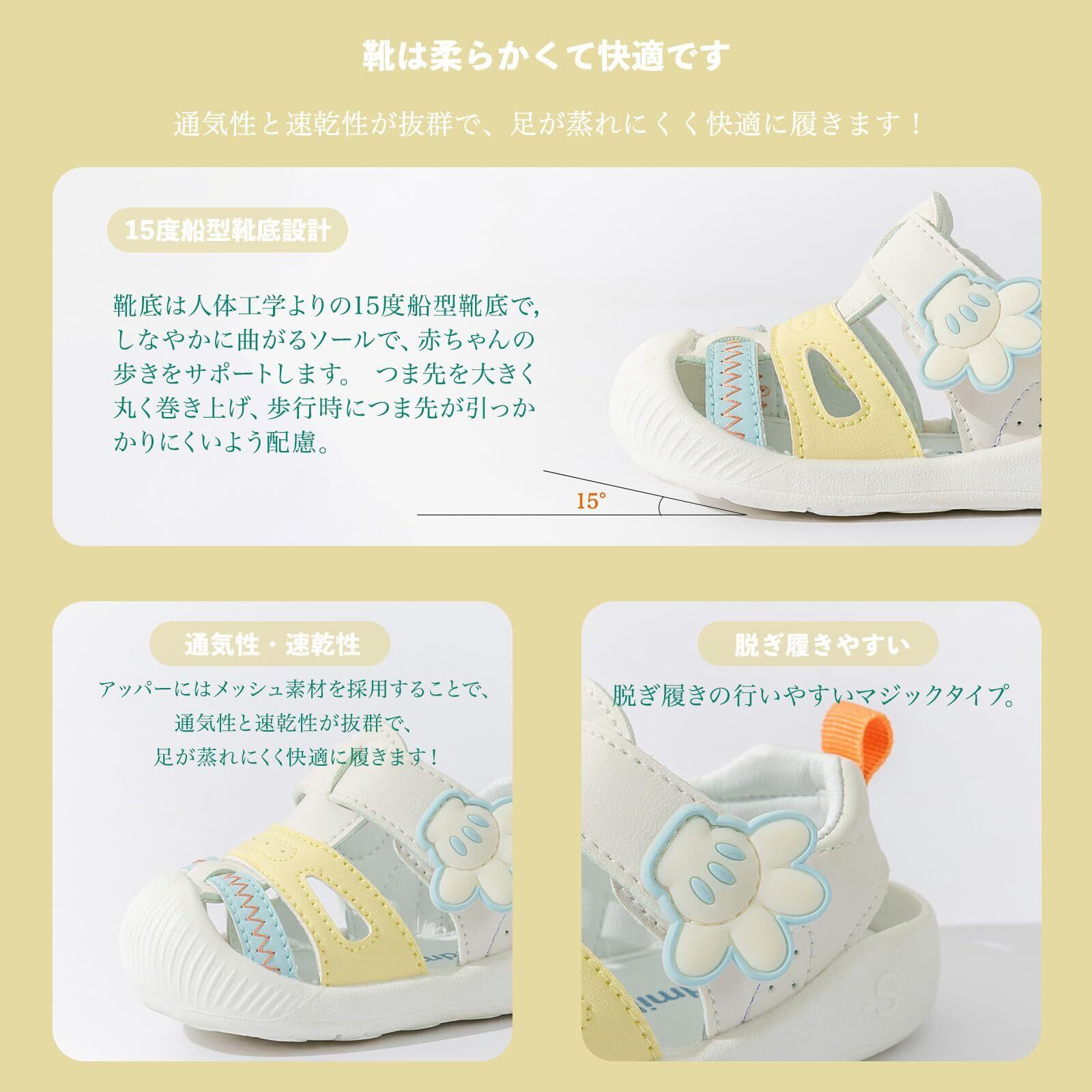 【サイズ選択の推奨】ザイズ選択:サイズ=足長+0.5~1.0cm=靴内長。「ご注意:靴のソールにはヨーロッパサイズが表示されているので、参考にしないでください。」お子様の実際の足のサイズにを基準にお選びください。機能性や履き心地だけではなく、子どもたちのおしゃれ心も満たしてくれそうなのベビーシューズです。通園はもちろん、遊びなどさまざまなシーンで活躍してくれるので、お子様やお孫様のプレゼントにも最適です 。