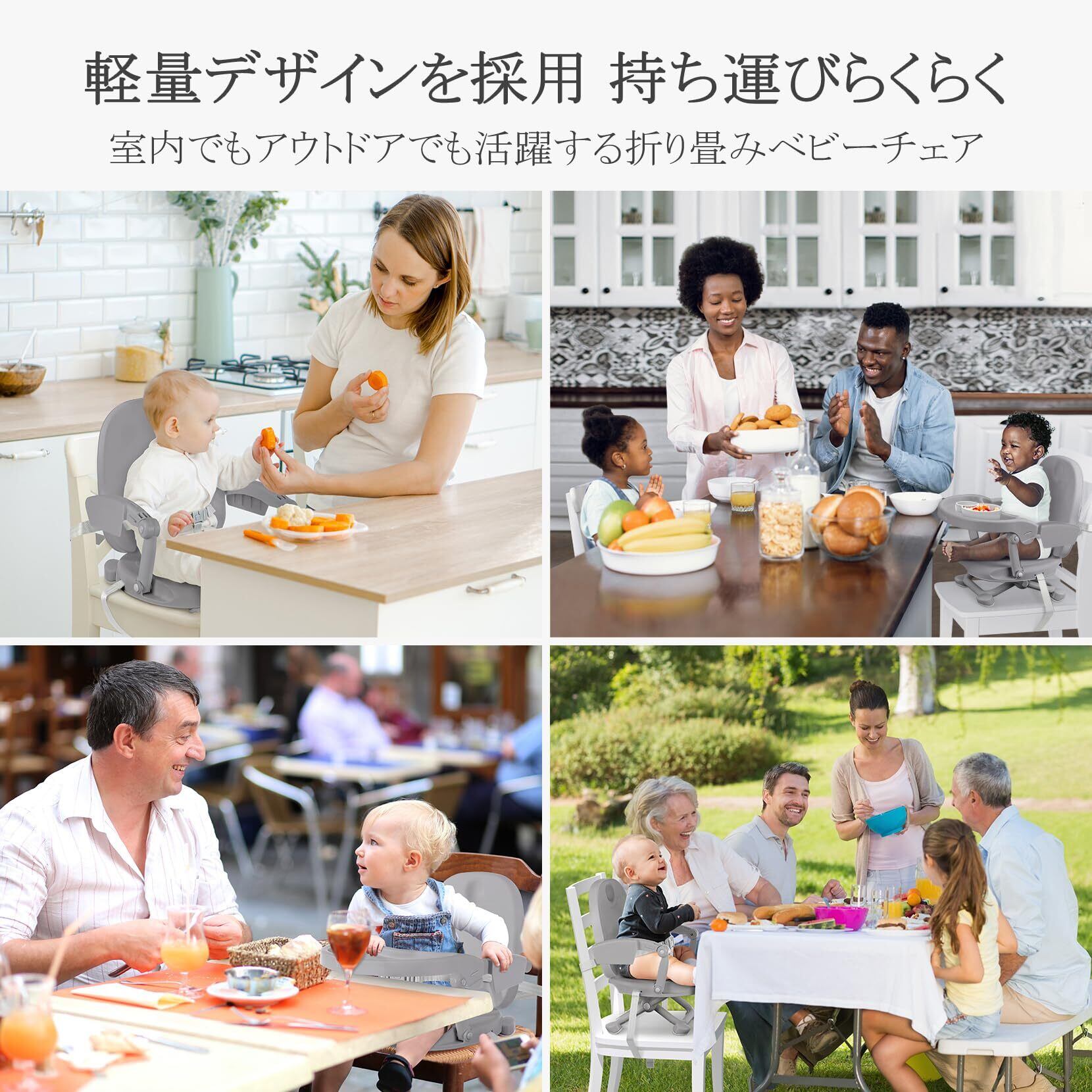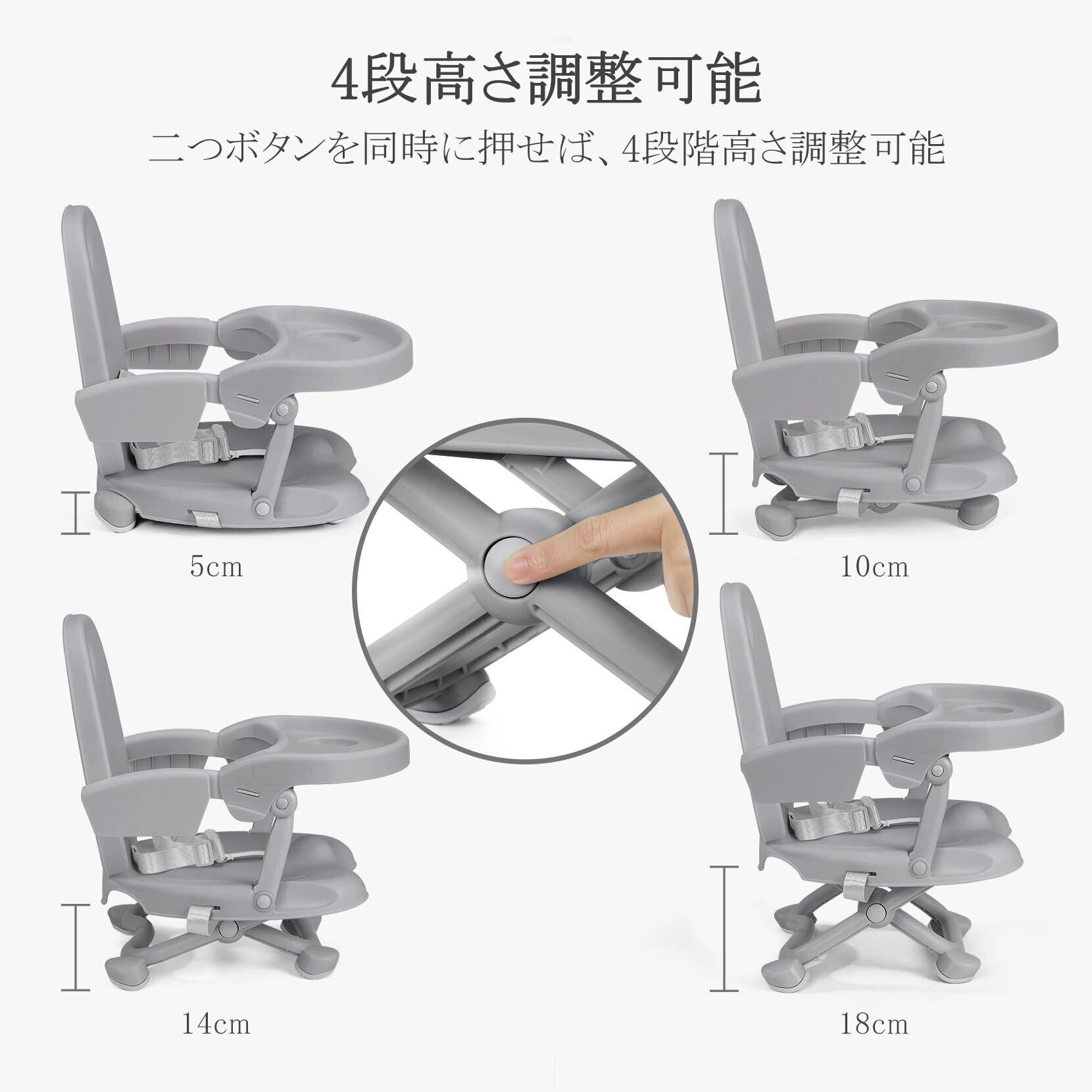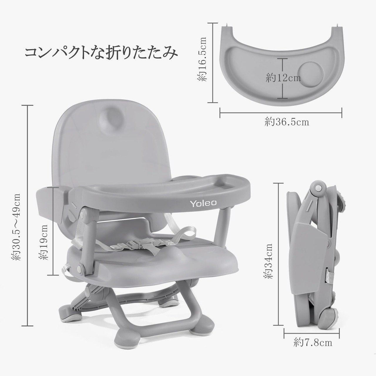 YOLEO ベビーチェア ブースターチェア 赤ちゃん用椅子 子供 お食事椅子 多機能 高さ調節可能 折りたたみ 安全ベルト付き 携帯便利 外出お持ち便利(グレー)