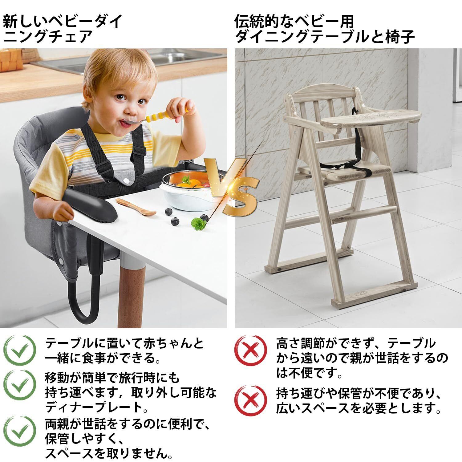 【丈夫で安全な設計】Yanhao赤ちゃん テーブルチェア アルミニウム合金フレームと鋸歯状の滑り止め固定ハンドル、耐久性があります。 安全性を確保するために、赤ちゃんが椅子の上に立つのを防ぐために、あらゆるサイズの赤ちゃんに適した5点式安全ベルトが組み込まれています。 。 滑り止めの柔らかいプラスチックアームはテーブルを傷つけません。 テーブルに掛けて家族で楽しく食事ができるチェア。耐荷重は20kgで、生後6~36ヶ月の赤ちゃんに適しています。 テーブル&チェアハイチェアには、食事中に食器を置くためのダイニングテーブルトレイが付属しています。