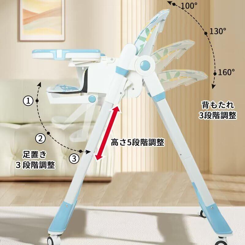 【5点式安全シートベルト・高品質素材】安全無毒なシリコン素材を採用し、120℃の耐熱、食べこぼしや汚れがついても、汚れたら簡単に取り外して洗える、3月から5歳まで長く使えるベビーチェアです。5点式の安全シートベルト、お子様の安全をしっかりお守りします。
