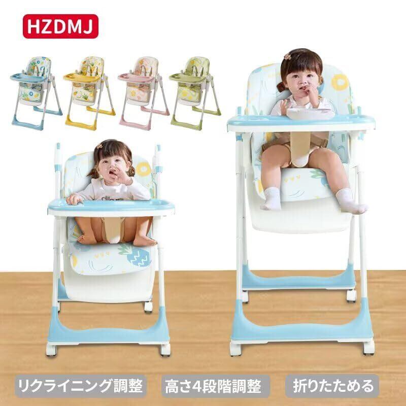 HZDMJ ベビーチェア ハイチェア ローチェア 2way 赤ちゃん用 キッズチェア 折りたたみ コンパクト クライニング 高さ調節可能 5点式安全ベルト 立ち上がり防止 キャスター付き 離乳食 お食事椅子 多機能 子供イス 出産祝い 6ヶ月から4歳まで