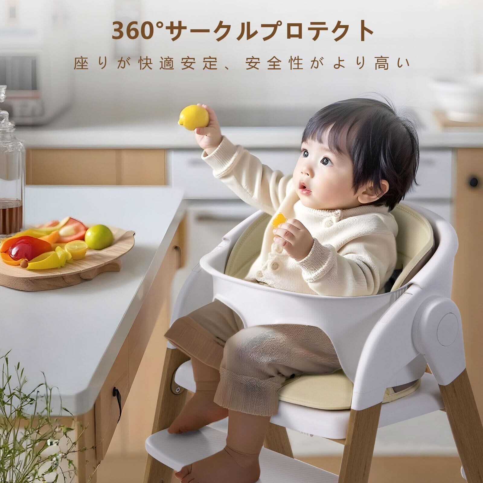 【安心設計】赤ちゃんが触れる部分は全て丸み加工済みです。椅子カバーは製造工程で化学物質を使用せず、人体に優しく、環境にも配慮したEPU素材です。汚れも簡単に拭き取れます。