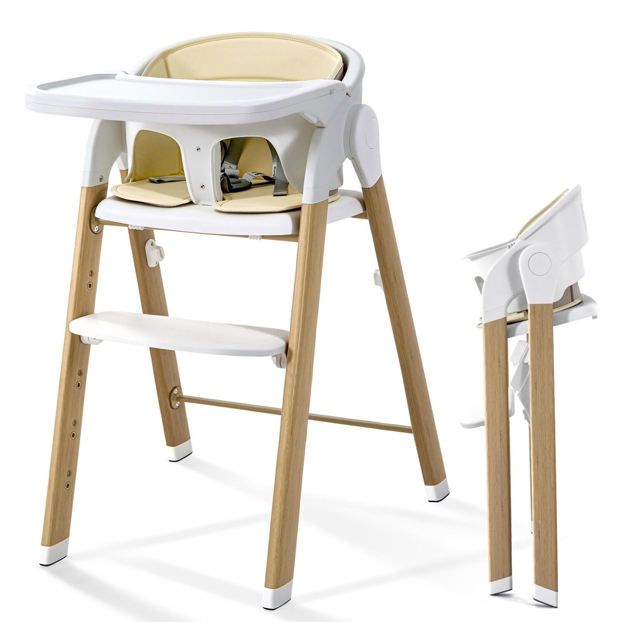 CHOZAN ハイチェア 成長チェア 食事トレイ付き ベビーチェア 折りたたみ キッズチェア 持運び便利 子供イス (ホワイト)