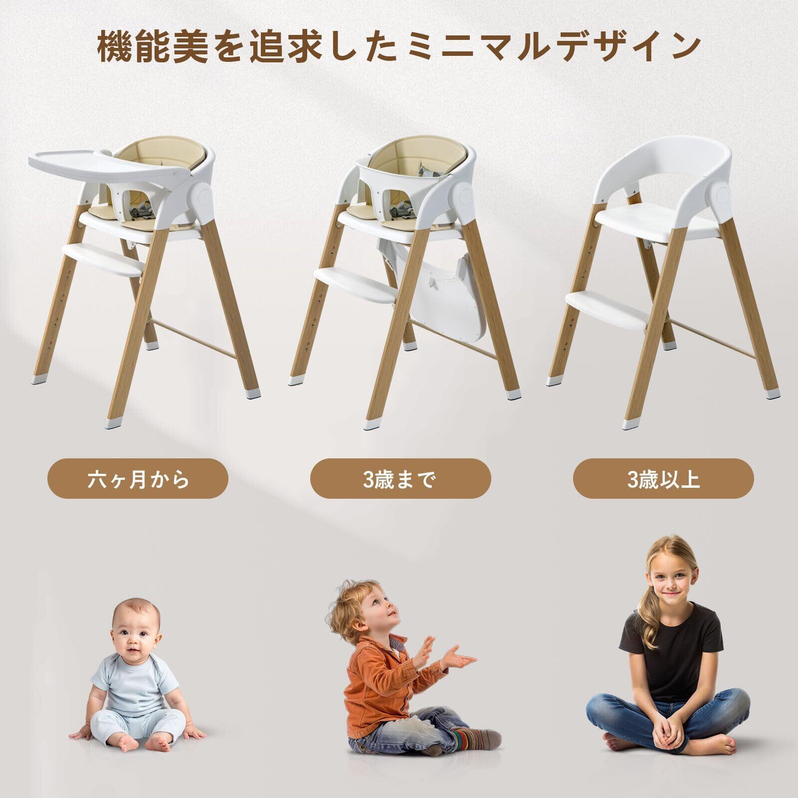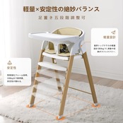 【軽量&安定】業界トップクラスの軽量設計(約9kg)を採用しており、移動や収納が驚くほどストレスフリーです。特殊強化フレーム採用で抜群の安定性を実現。耐荷重108kgのため、6ヵ月から大人まで、成長に合わせてずっと使えるハイチェアです。