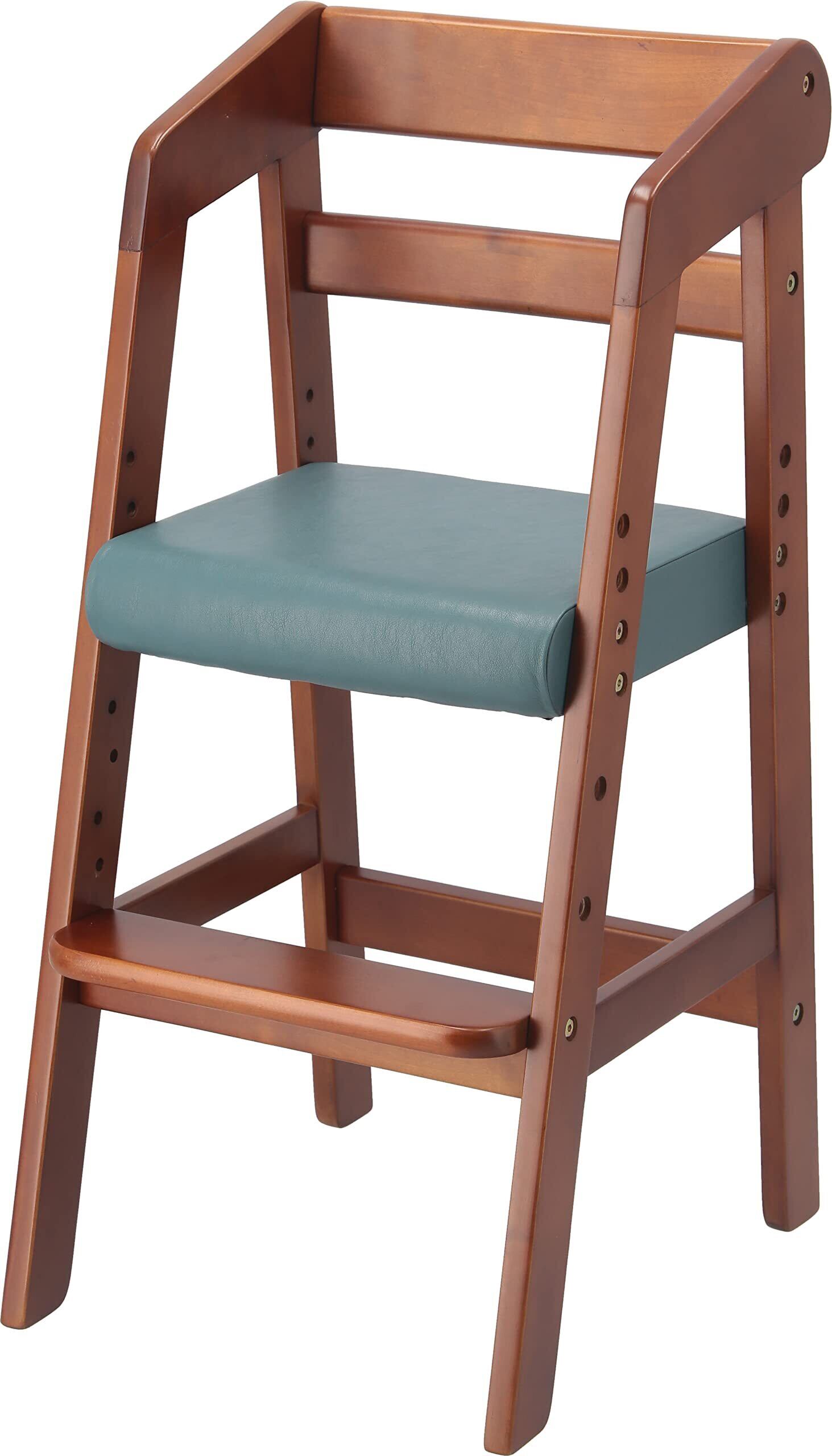 不二貿易 ベビーチェア キッズチェア 幅35×奥行41×高さ74.5cm ミディアムブラウン 木製 3段階 高さ調整可能 2才~5才 ハイチェア 14938