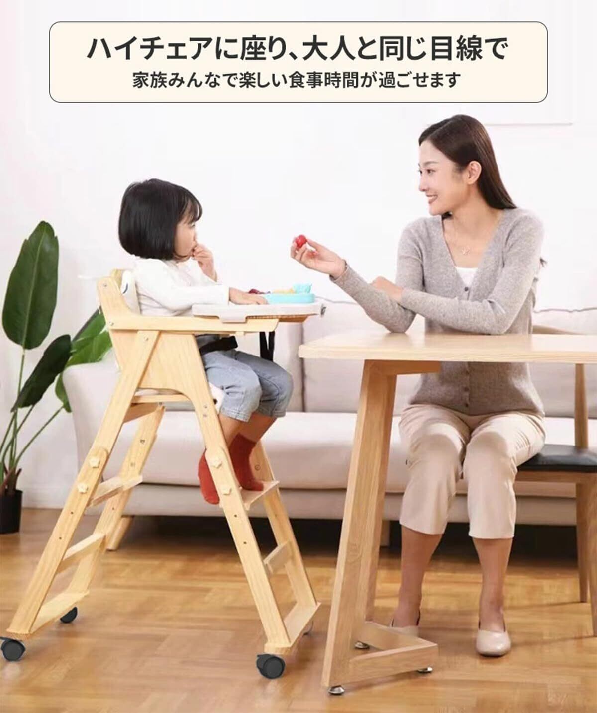 【多機能ベビーチェア】足の高さの調節でハイチェアからローチェアまで変身でき、お食事に、遊びに、身長に合わせて調整できる多機能ベビーチェアです。使わない時はテーブルを後ろに引くことで普通の椅子になります。