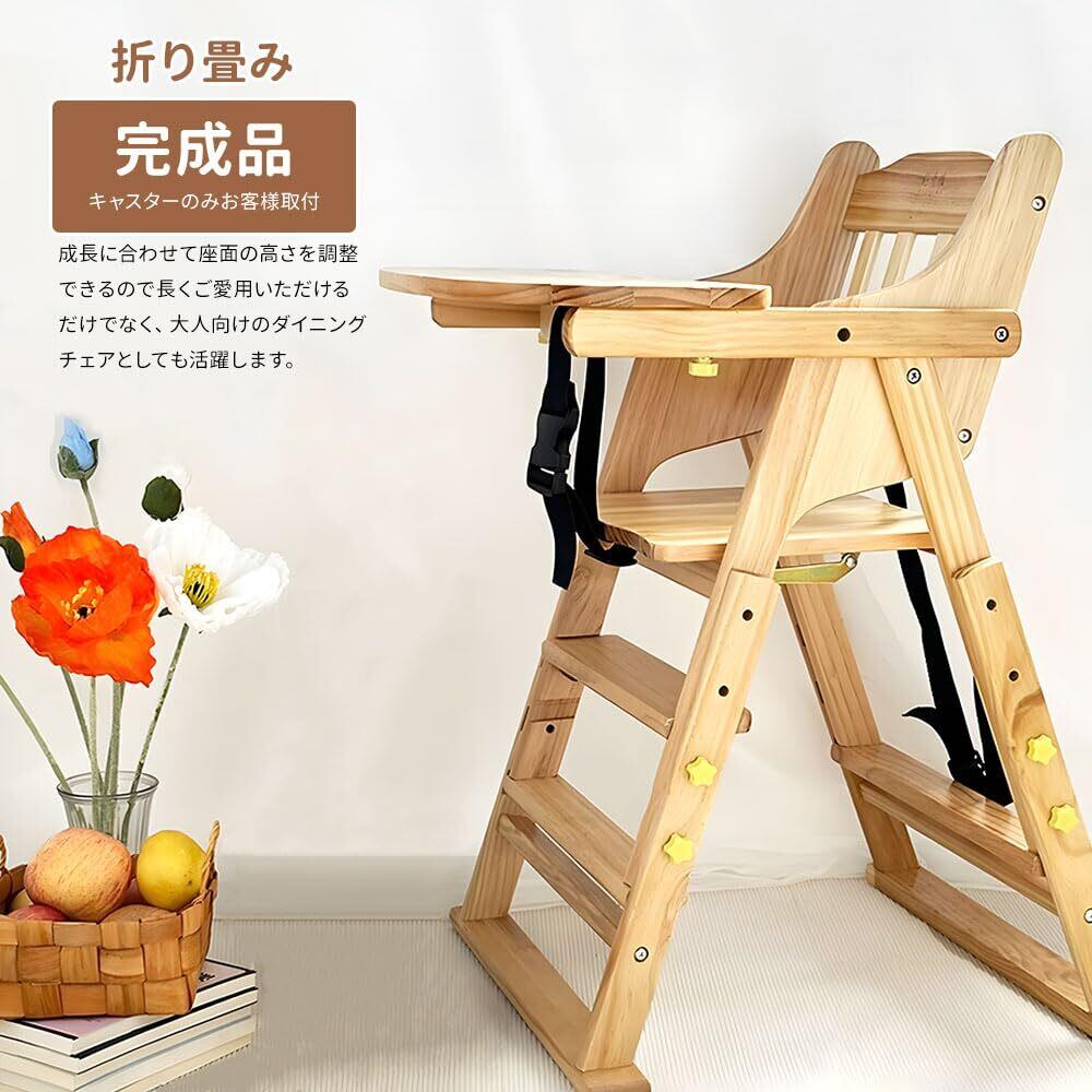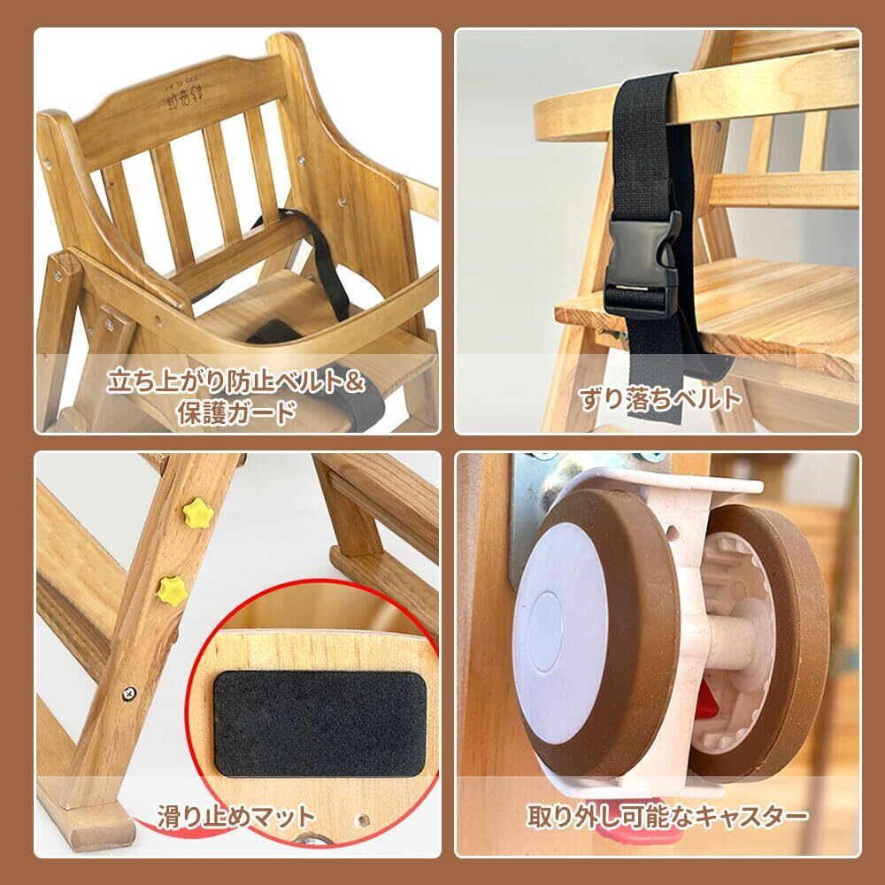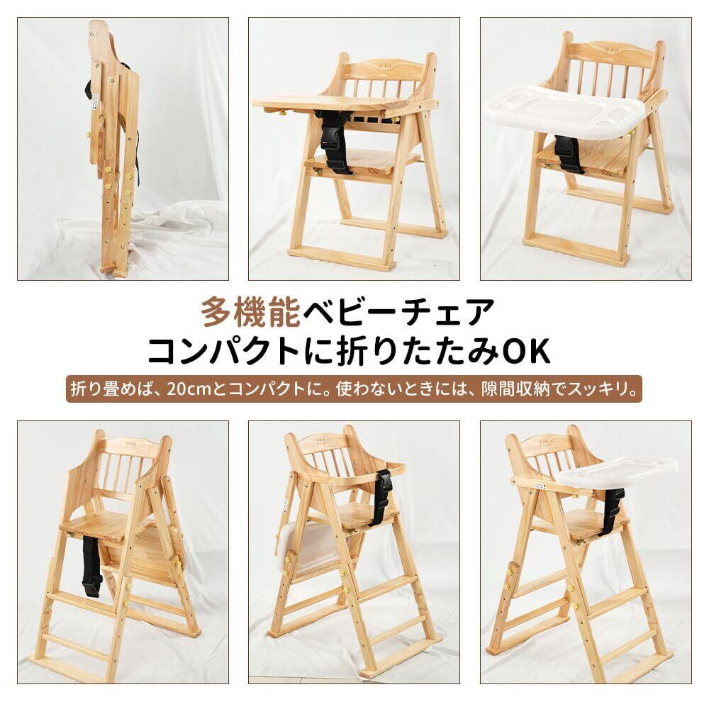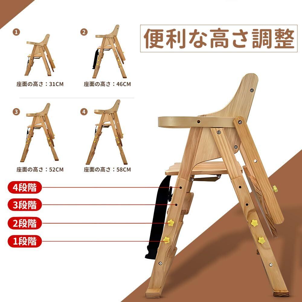 ZOOBLY ベビーチェア ハイローチェア 完成品 折りたたみ 木製 足置き2段階調整 ダイニング 二層テーブル 一台多役 4段階高さ調整 立ち上がり防止 ベルト付き 子供用椅子 キッズチェアー 離乳食 お手入れ簡単