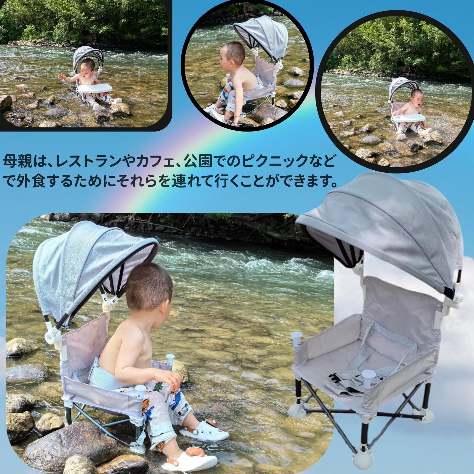 【夏に向け】通気性がよく、座りながらと赤ちゃんは蒸し暑くなりません。また、サンシェード付き、日光をカバーすることで暑さ対策に役立ちます。