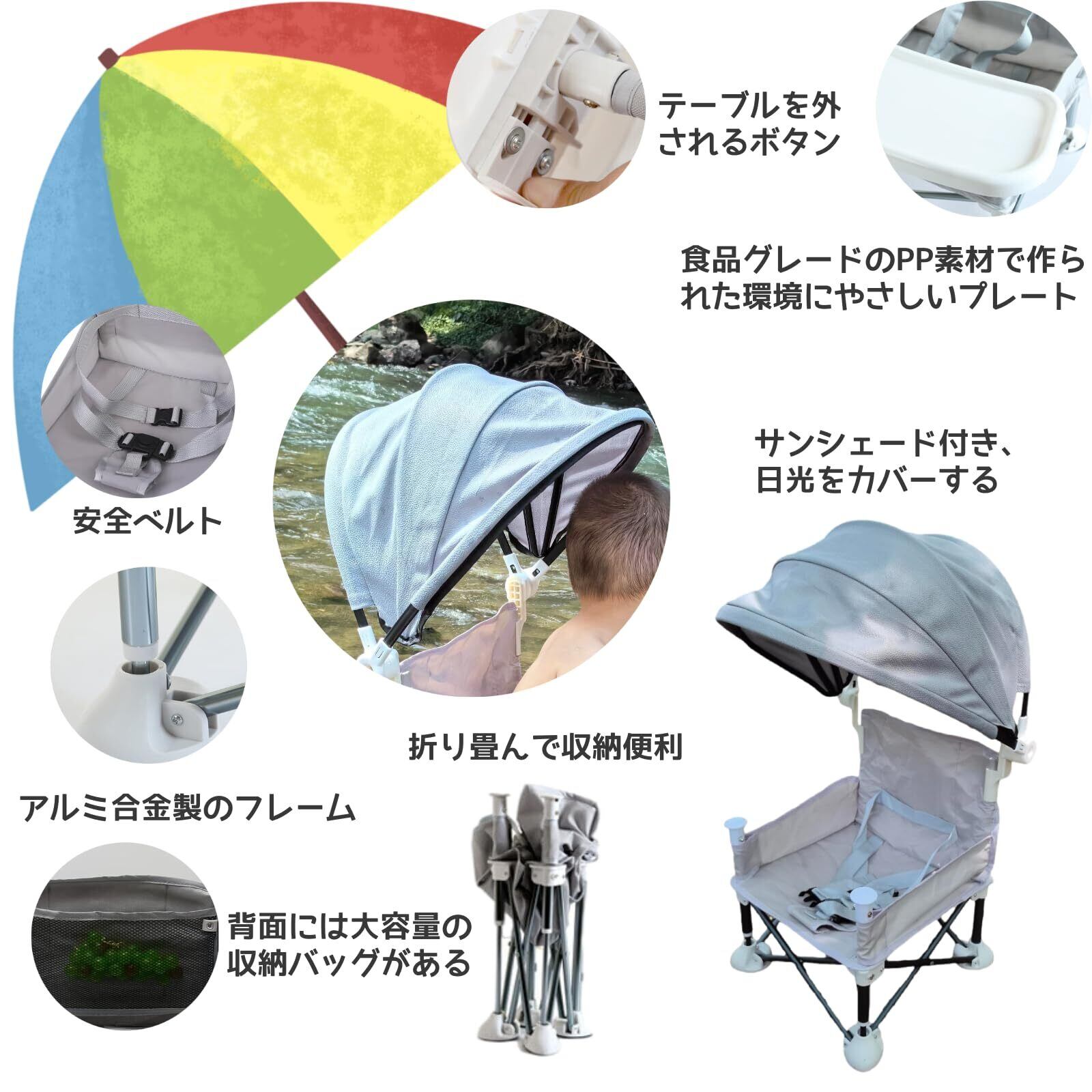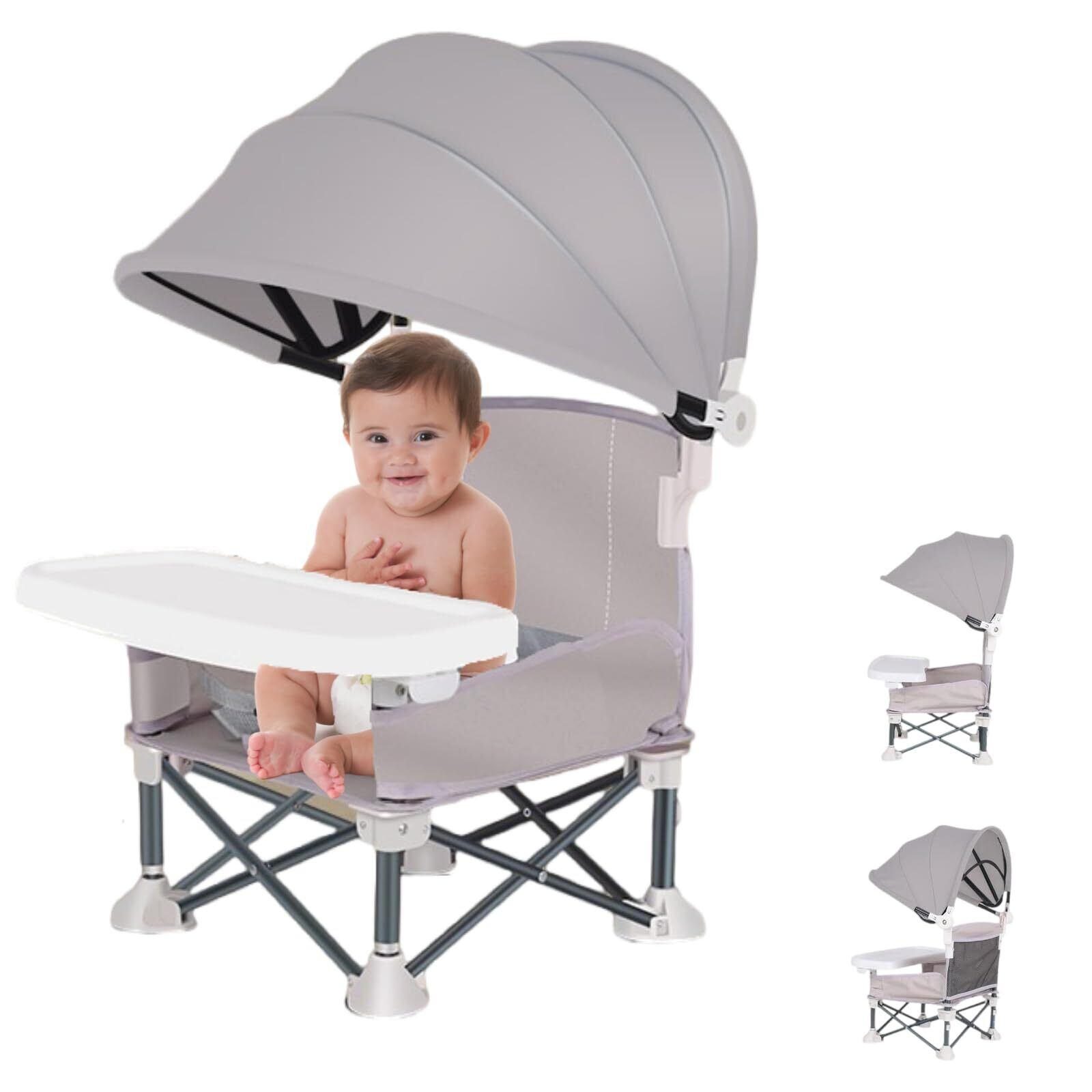 Little Bean® ベビーチェア テーブル 折りたたみ 軽量 ベビー椅子 赤ちゃん 子供 キッズチェア お食事椅子 携帯 ダイニングテーブルと椅子 6ヶ月から3歳まで 多機能チェア 収納袋付き (グレー)