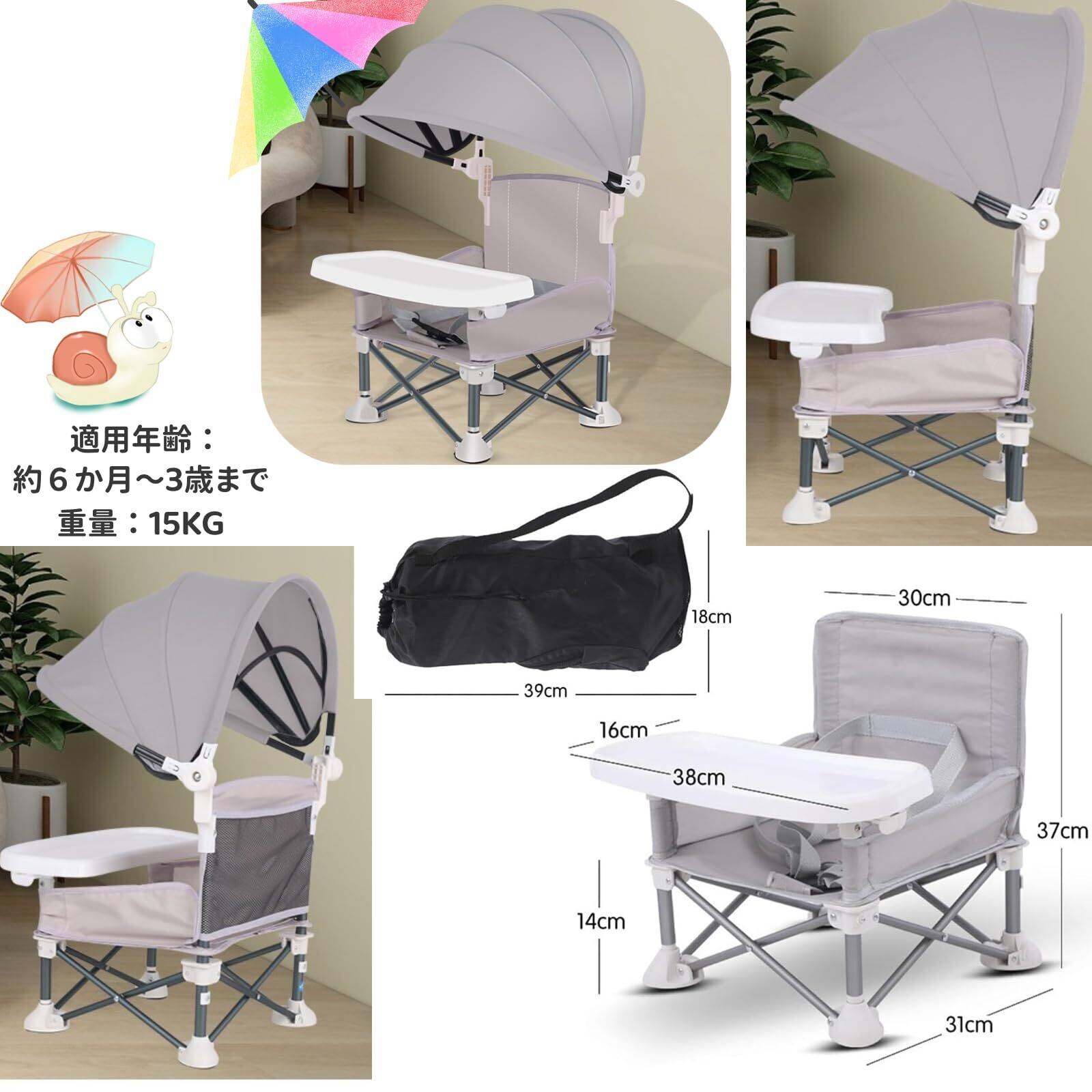 【適用年齢】約6か月~約3歳までの一人で座れるようになってからお使い下さい。15㎏までの重量に耐えることが出来ます。 お子様だけでのご使用はやめて下さい。ご使用の際は、必ず保護者の方が近くにいる状況でお使い下さい。