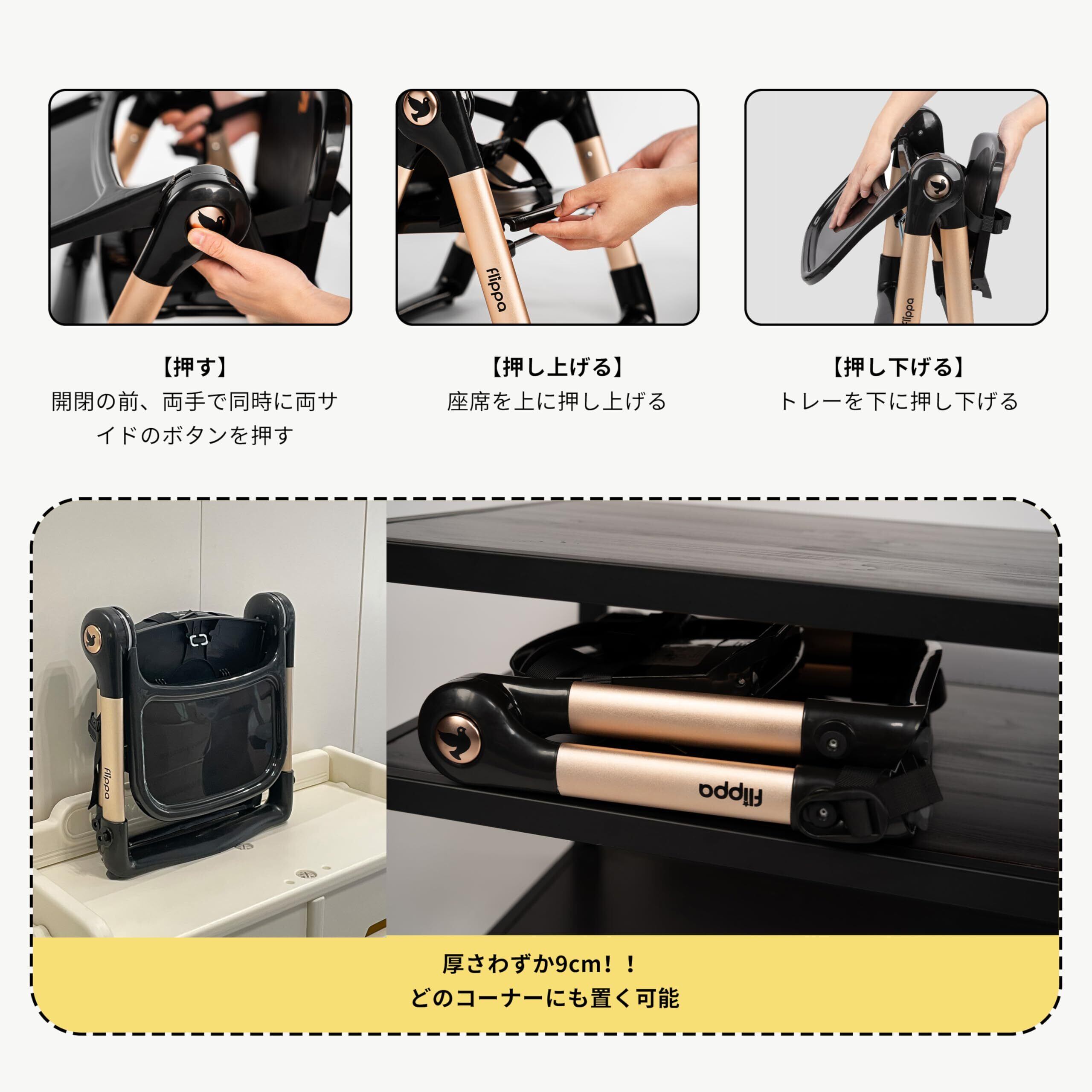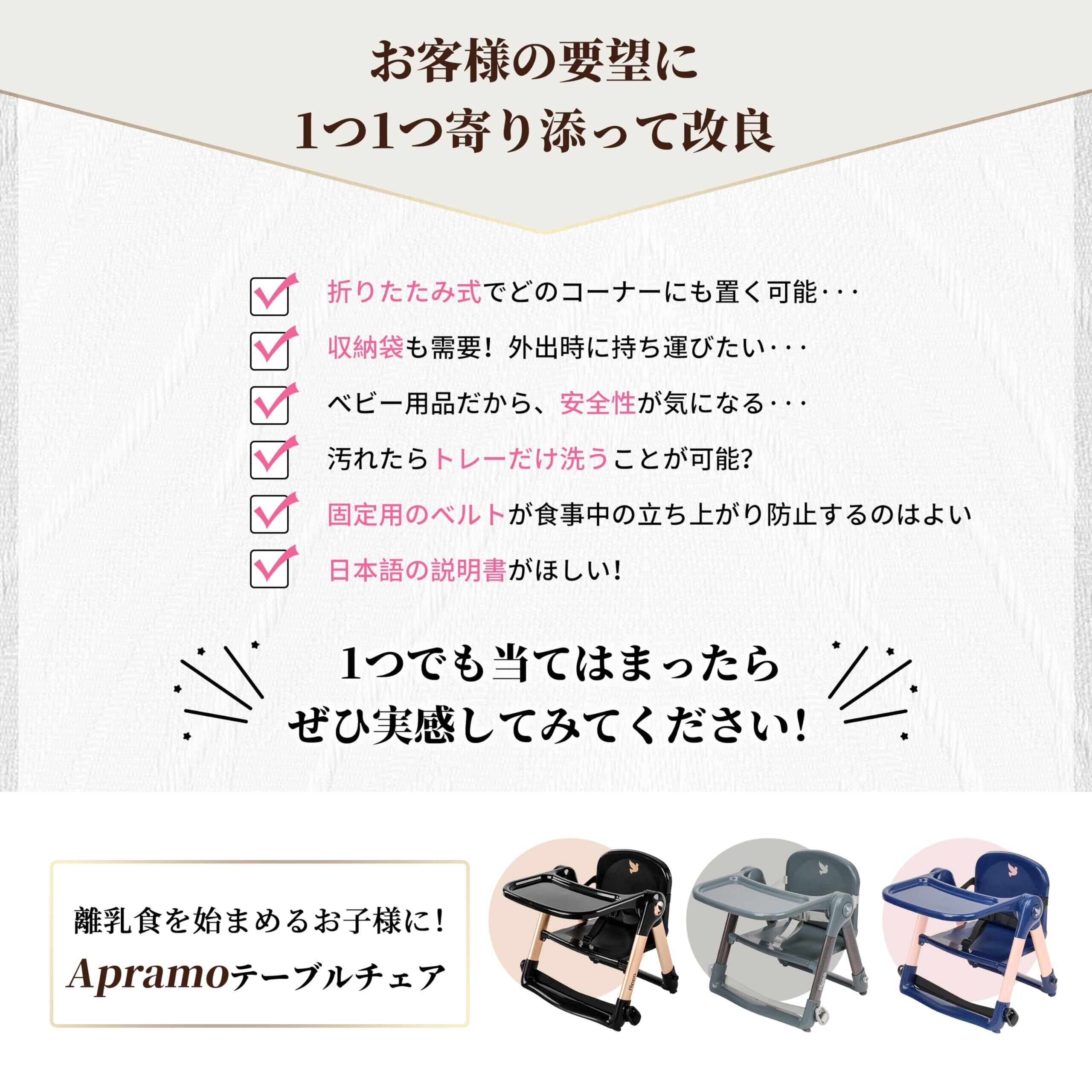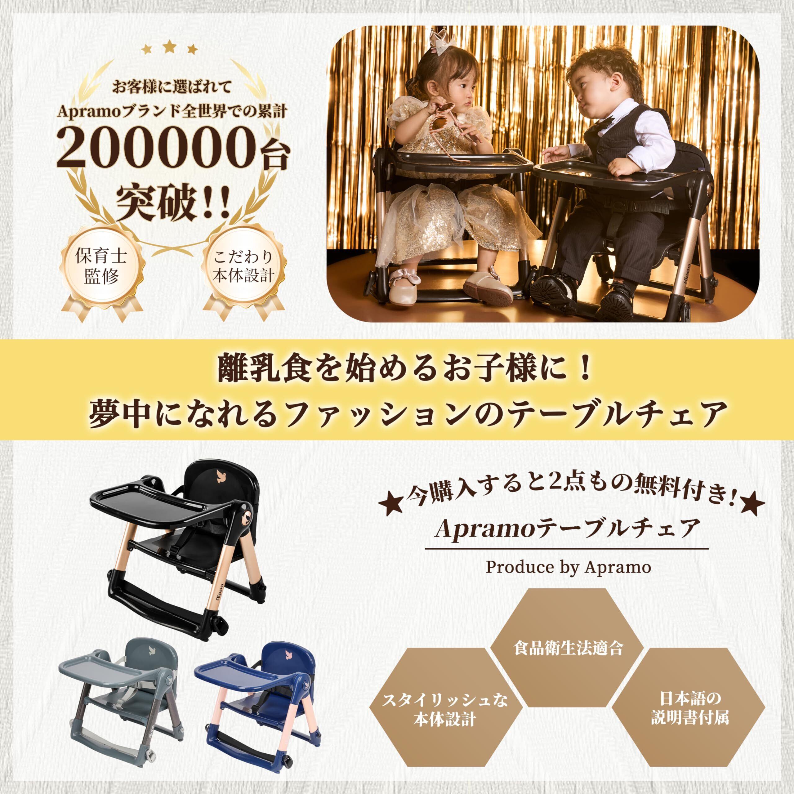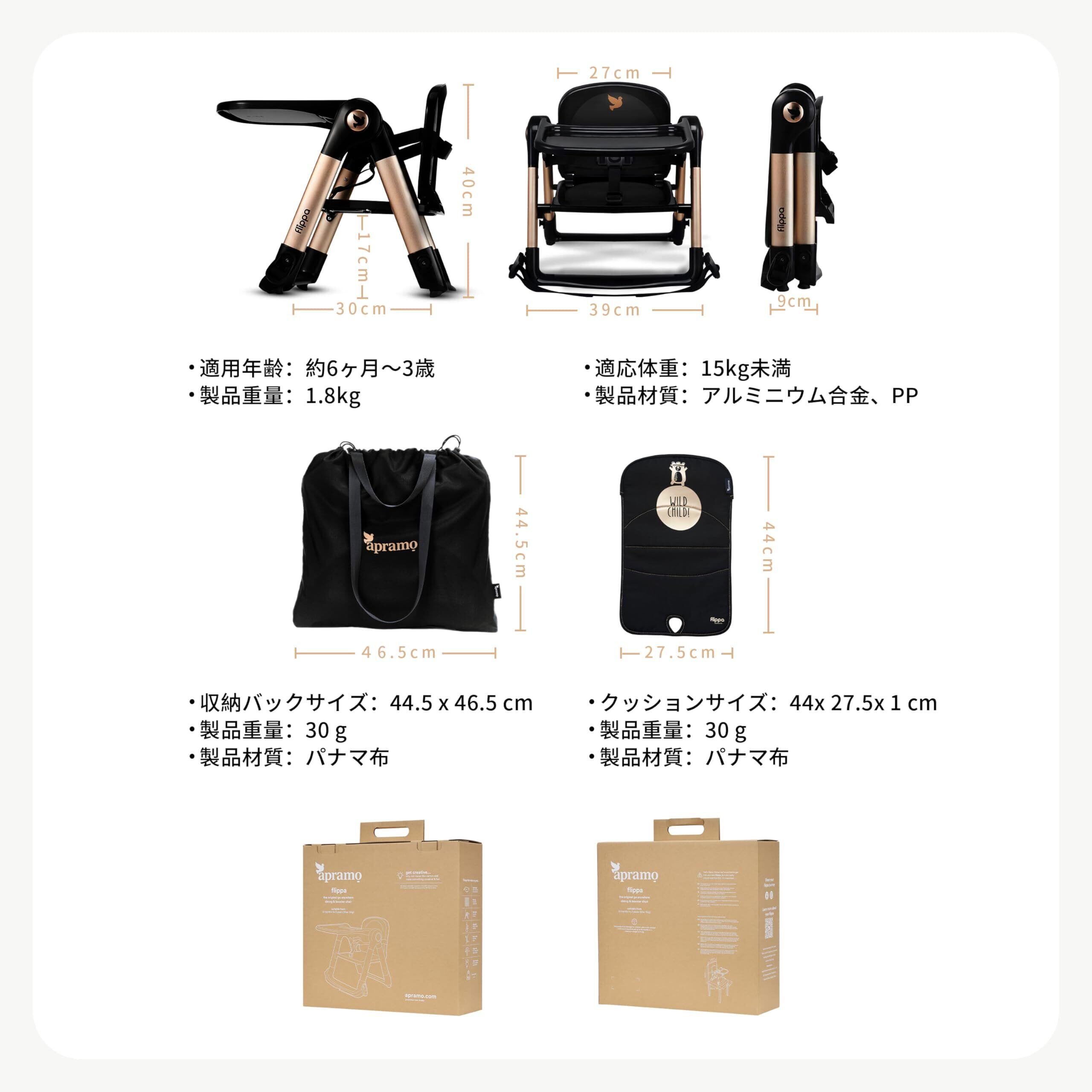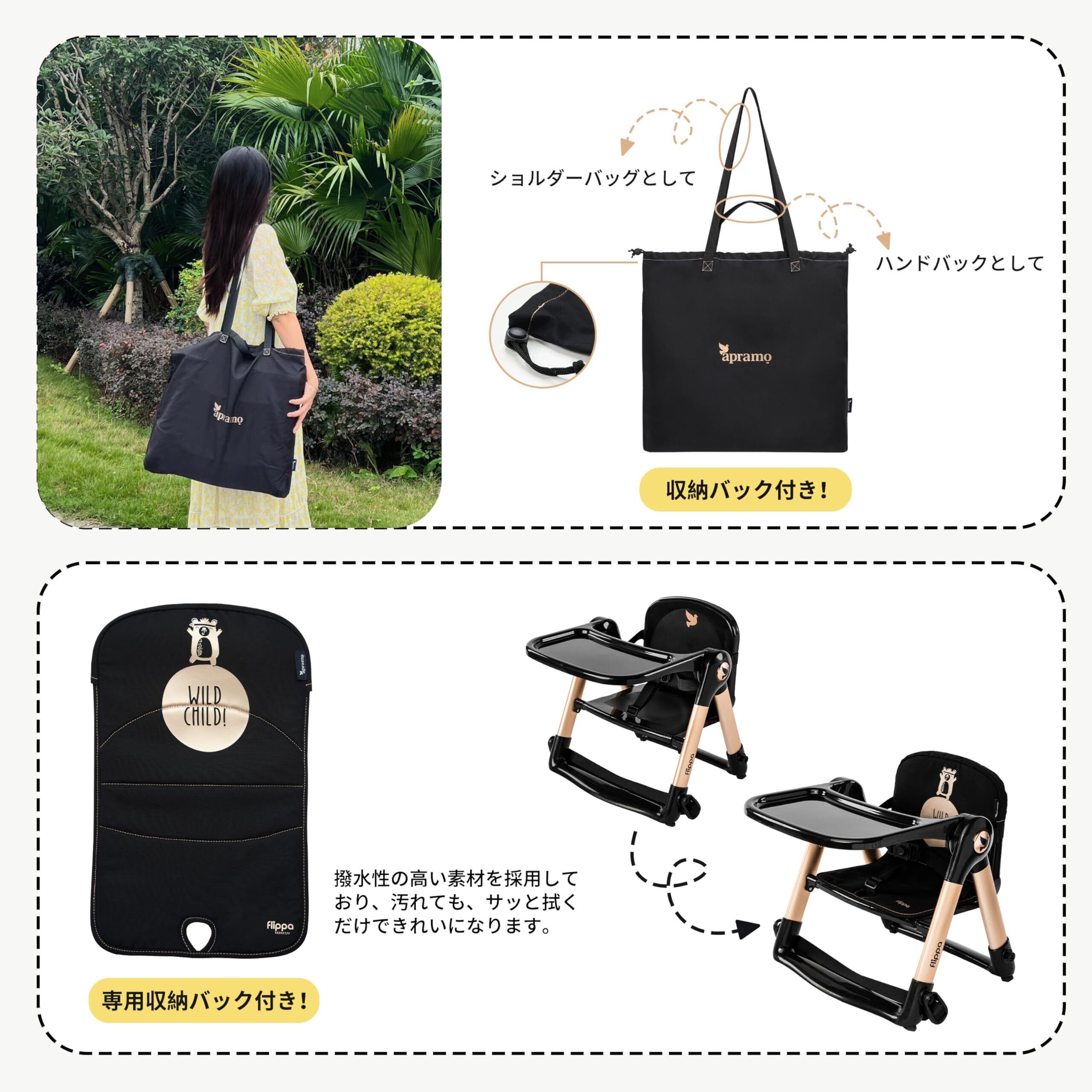 apramo (アプラモ) ベビーチェア テーブルチェア 離乳食 ローチェア 折りたたみ キッズチェア 子供 赤ちゃん 幼児用 お食事椅子 持ち運び便利 滑り止め 丈夫 安全ベルト 屋内 屋外 収納袋 クッション付き (Rockstar/ブラック)