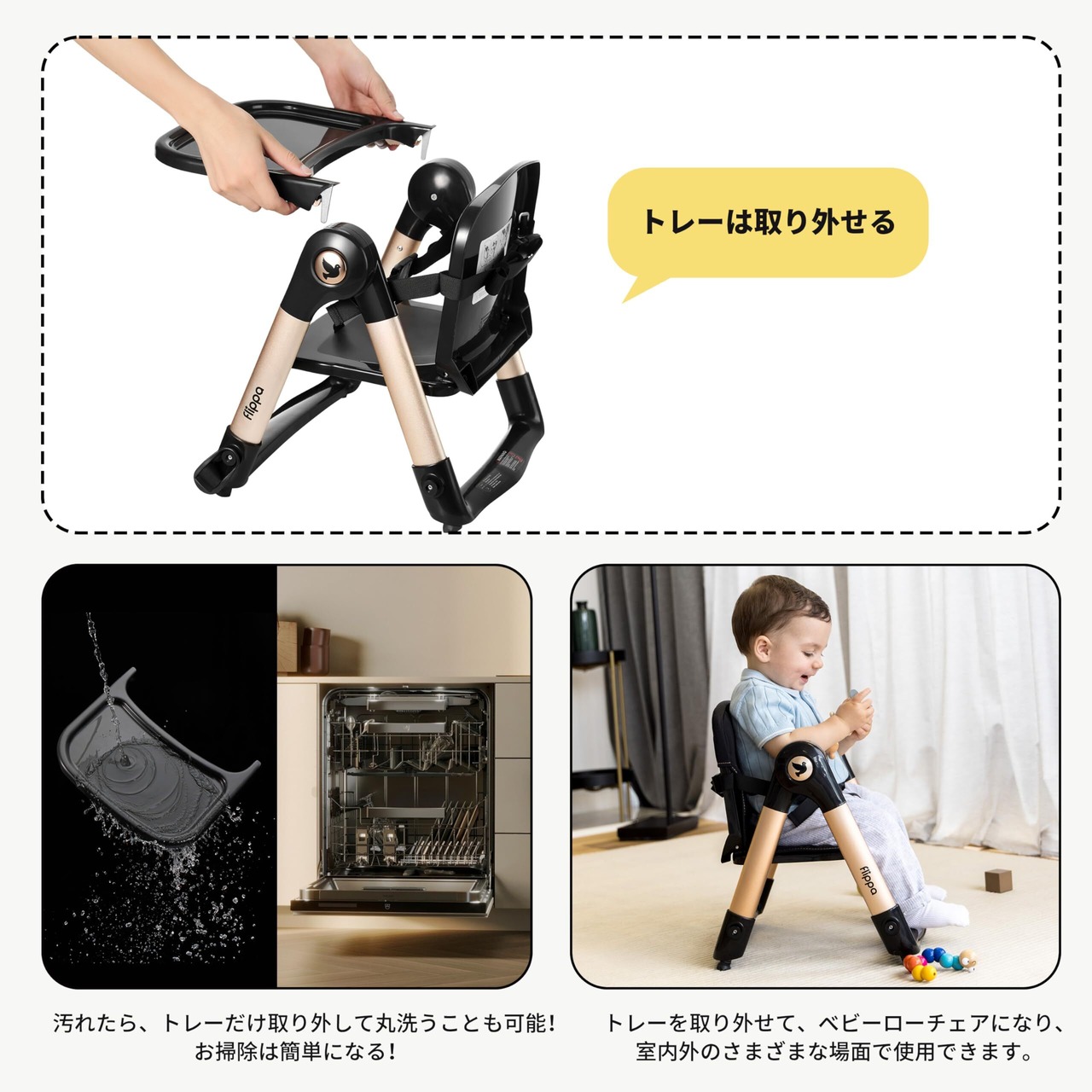 【マルチシーン対応】6ヶ月~約3歳まで、または15kg以下の一人で座れるようになった幼児。トレイをつける時は食事専用だけでなく、お子さんの学習・遊びも行えます。トレイを外すとローチェアになり、屋内・屋外の様々なシーンで使用可能!