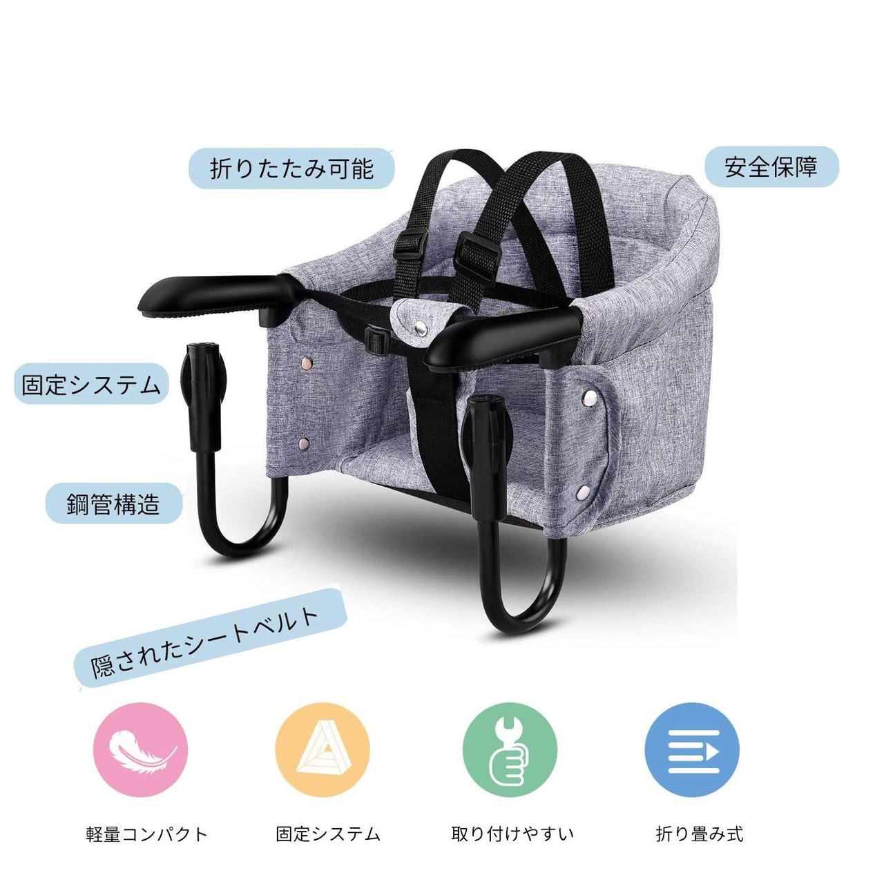 【スリップ防止で安全チェア】安全性を確保するため、5点式調整可能のシートベルトの設計で、直立や滑りを防げます。 滑り止めのソフトプラスチックアームはテーブルを傷つけないためです。テーブルに引っ掛けられるチェアで、楽しんで家族と一緒に食事を取ることができます。