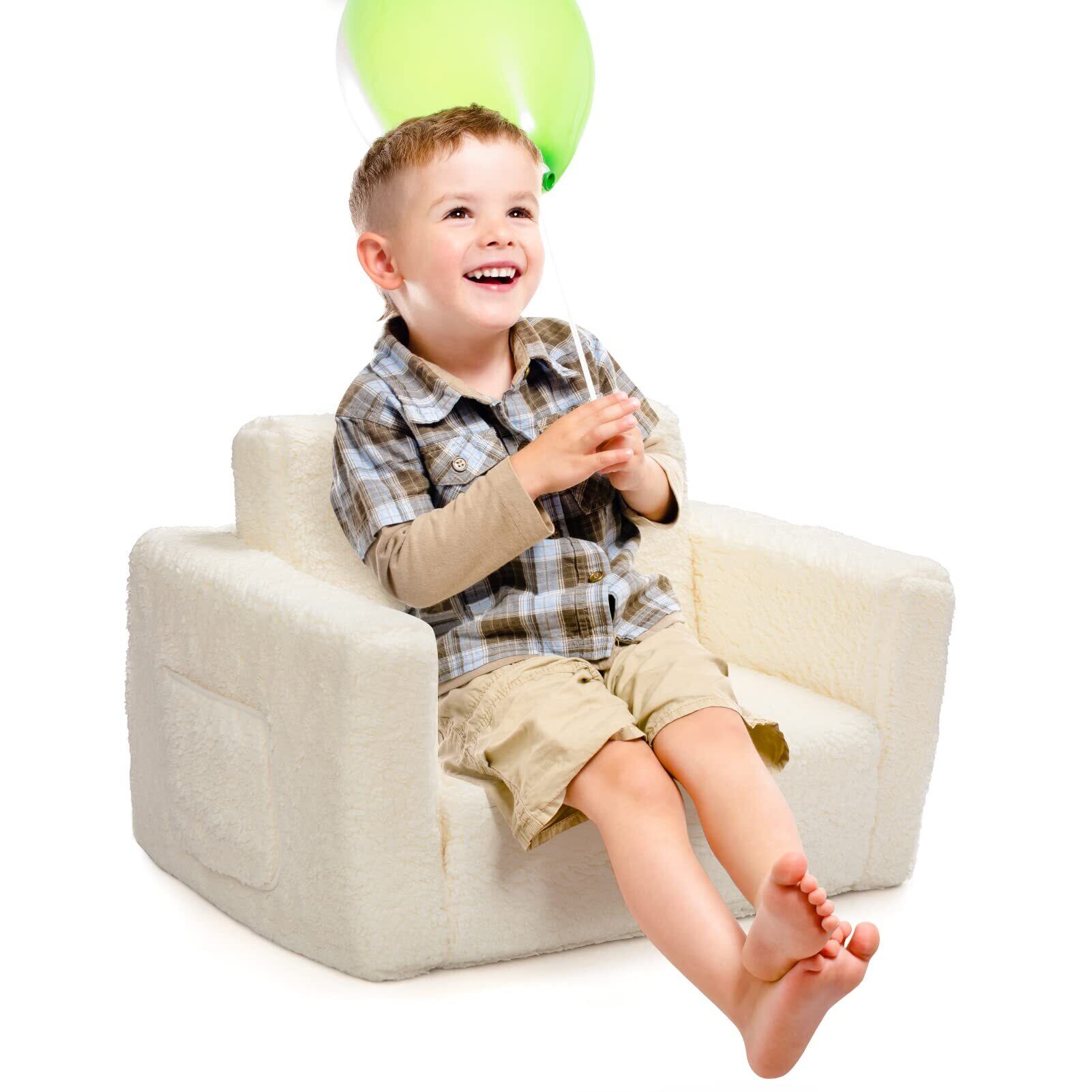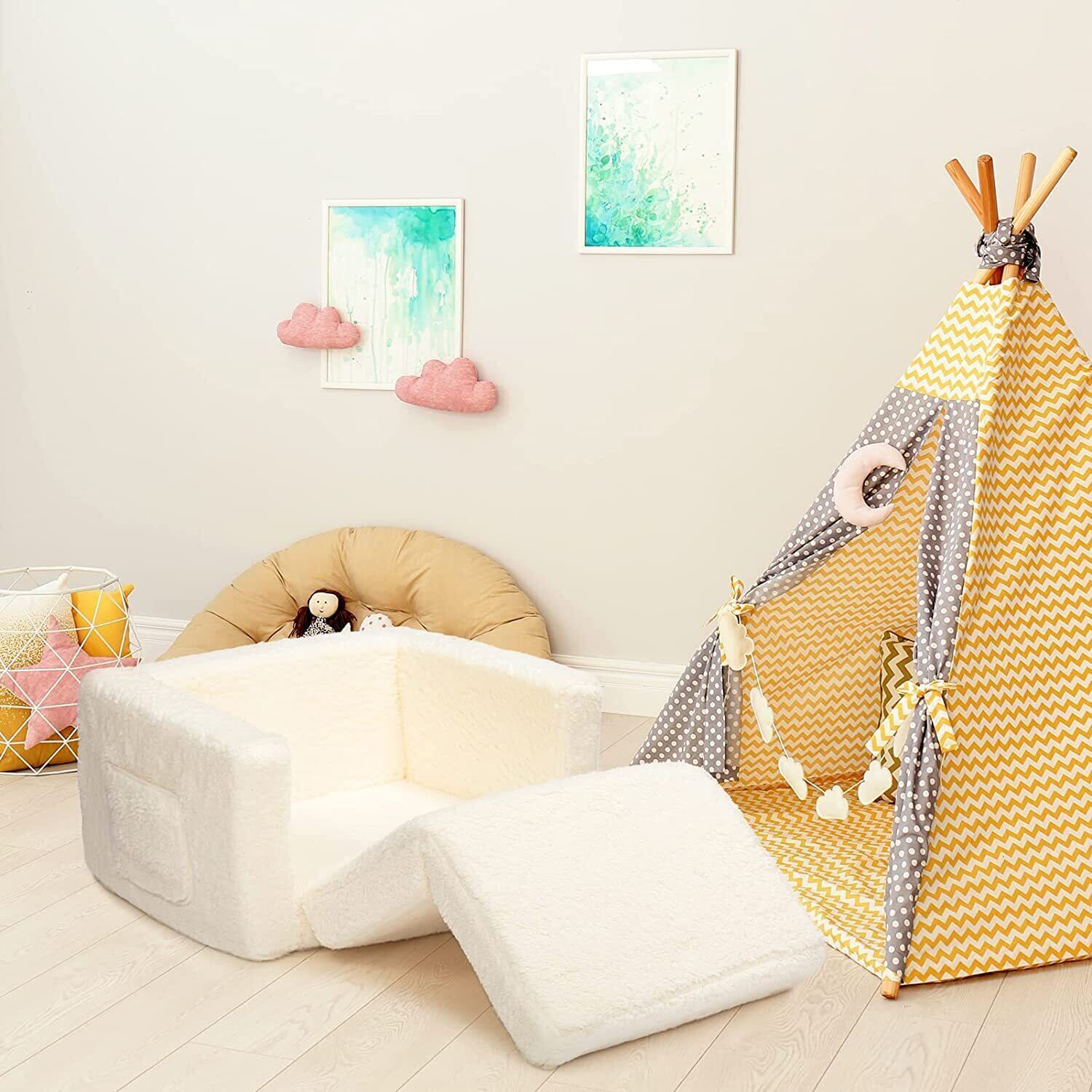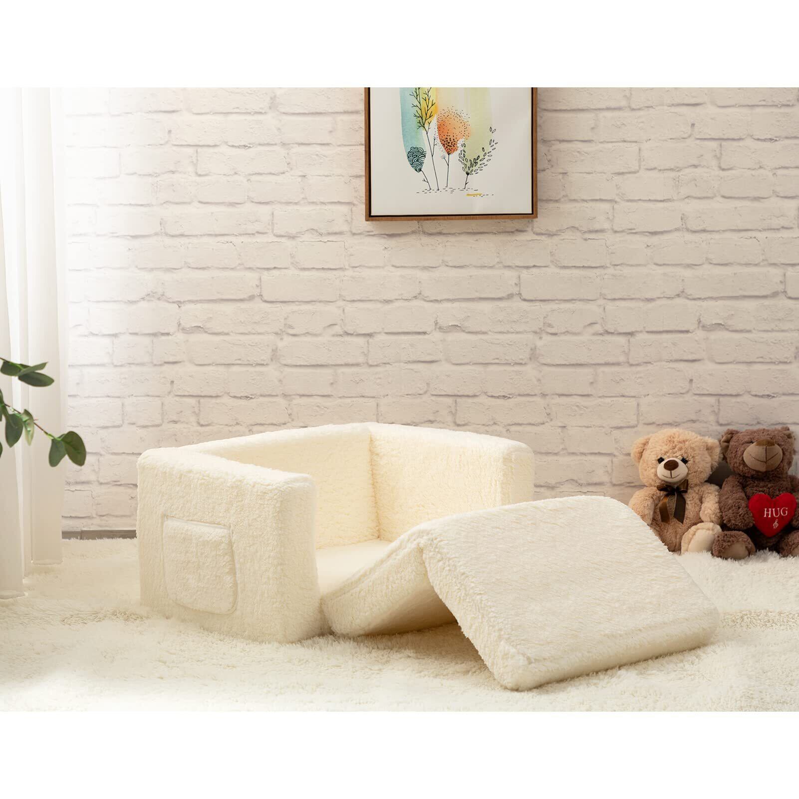 【在庫処分】ALIMORDEN 子供用ソファー 折りたたみキッズソファーベッド ベビーチェア 赤ちゃん座椅子 可愛い ふわふわ 背もたれ プレゼント ホワイト