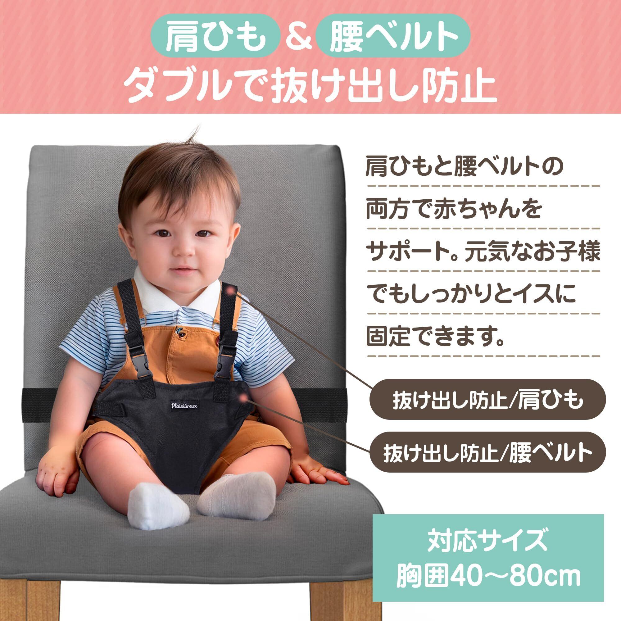 【保育士監修】チェアベルト 赤ちゃん 椅子ベルト 食事 椅子 ベビーチェア サポートベルト チェア 安全ベルト おすわり補助 転落防止 持ち運び お出かけ(プレジュール) (ブラック)