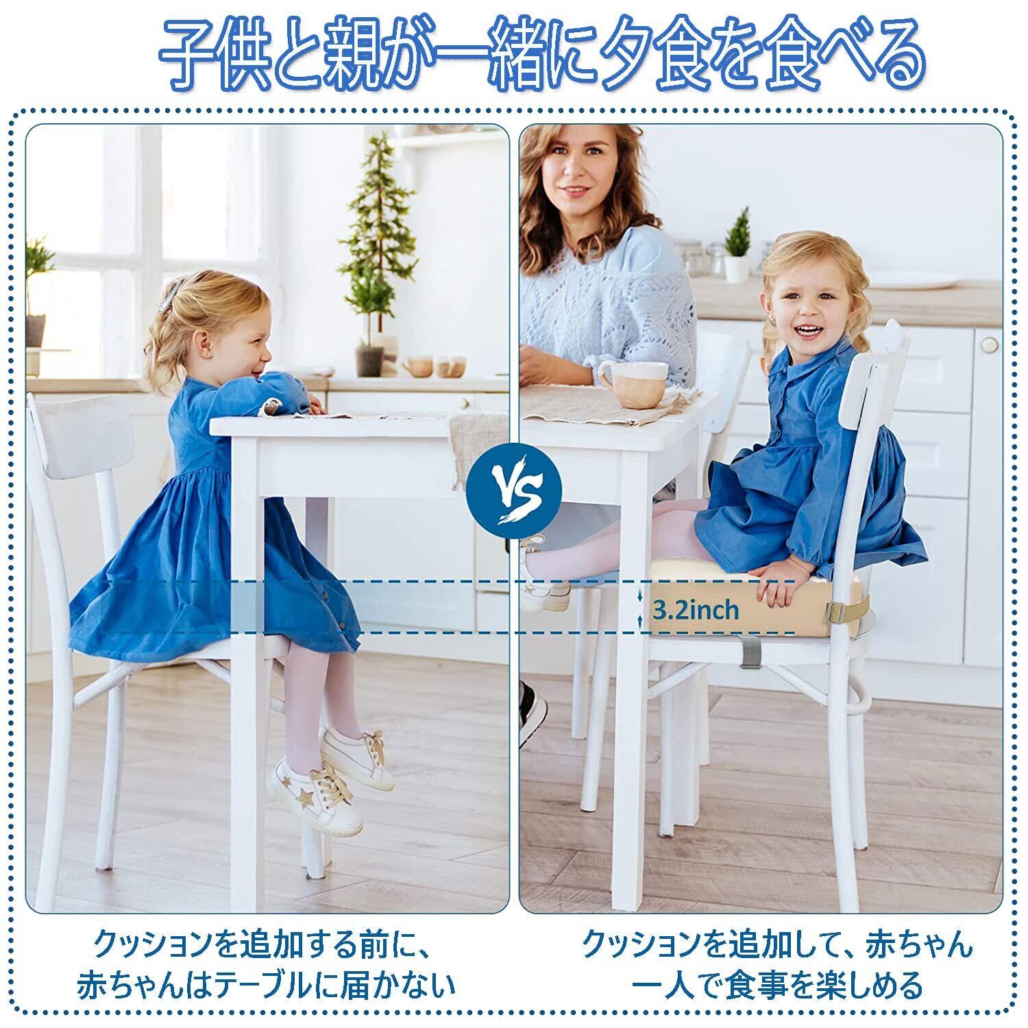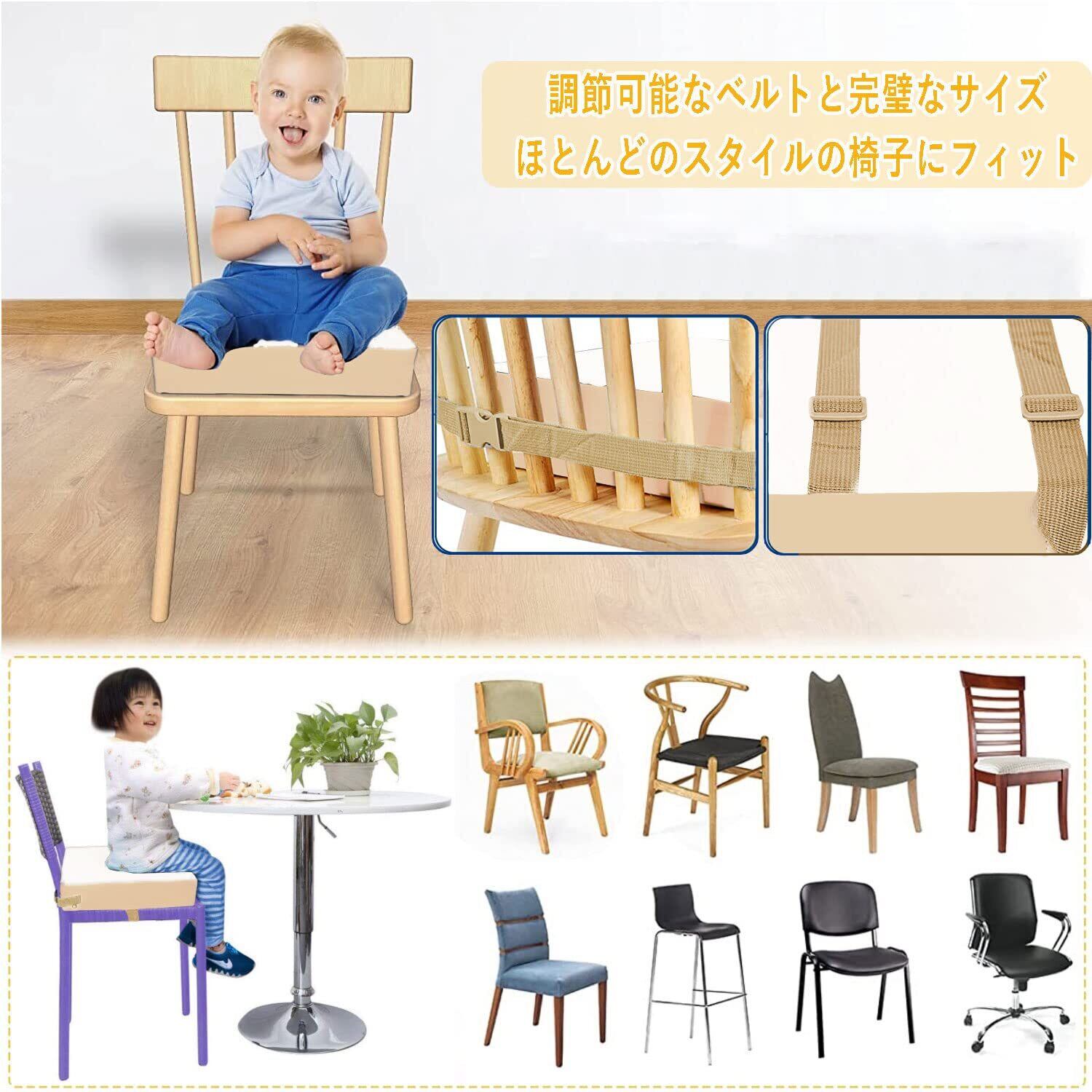 【安全性と取り付け】クッションには2つの調整可能なレザーベルトがあり、長さは50-75cm、さまざまなサイズの椅子、スツール、またはプラットフォームに適しています。シートベルトバックルを椅子の背面と下部に固定する必要があります。 クッションを確保する滑りにくく、お子様の安全な食事をお約束します。 36か月から72か月までの子供が家族と一緒にテーブルで夕食をとるのに適しています。