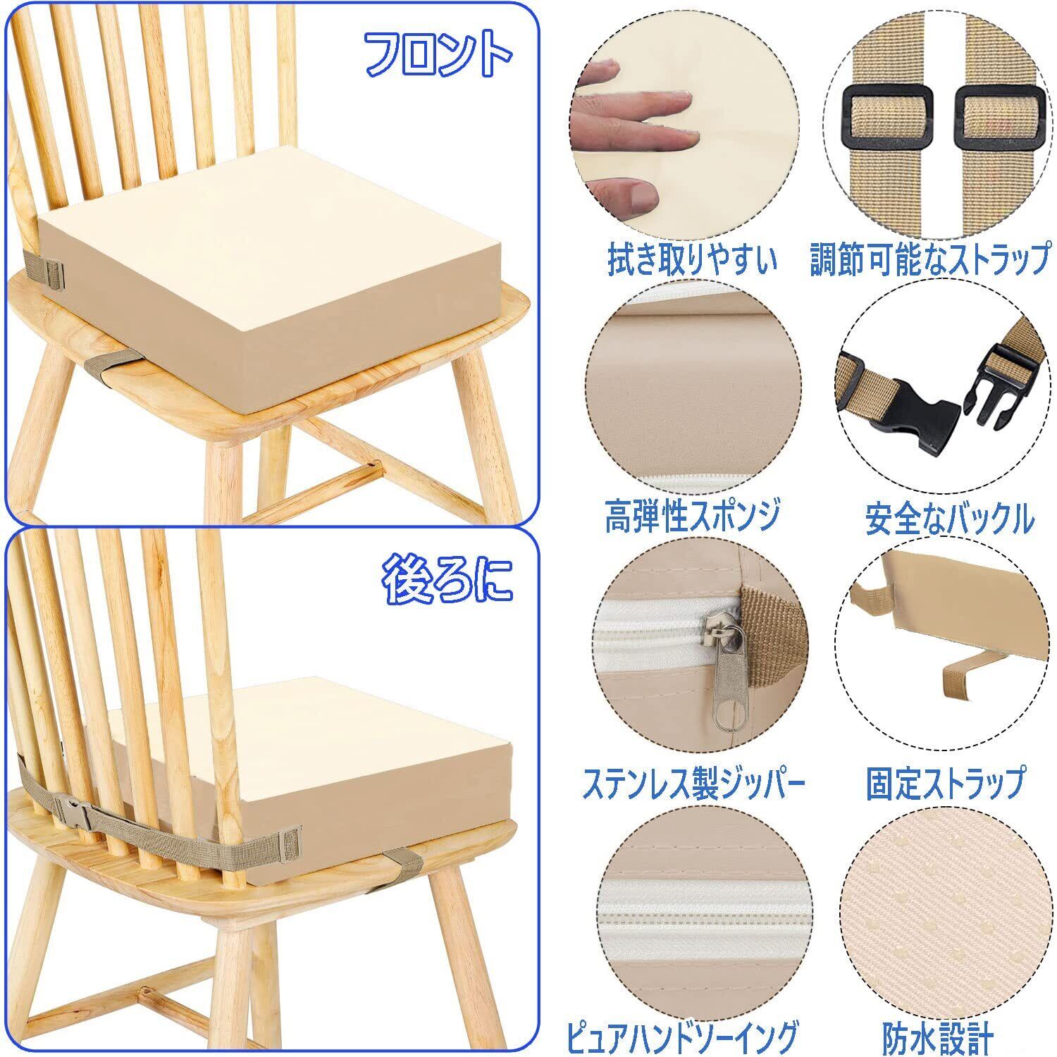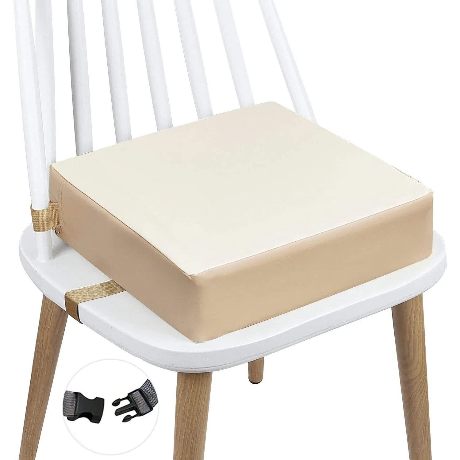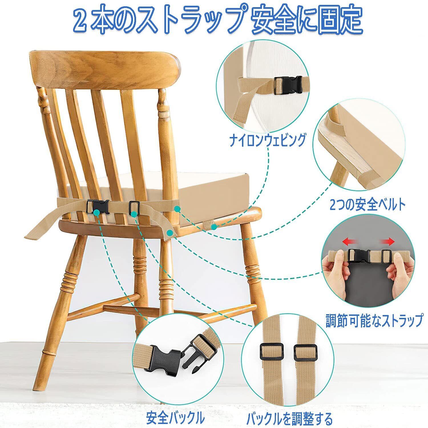 高さ調節お子様用クッション, こどもお食事座布団 ダイニング チェア クッション ポータブル 取り外し可能 ハイチェア ブースター キッズ用 ウォッシャブル い チェア シート パッド マット 布 ストラップ (ちゃいろ)
