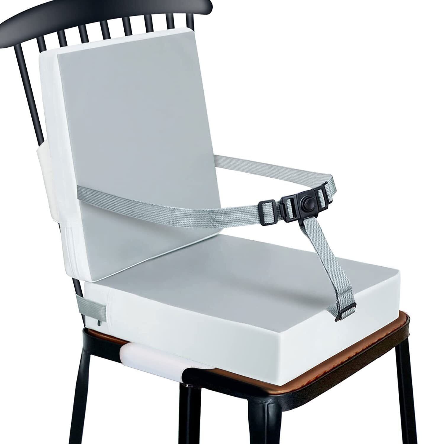 【特価セール】高さ調節お子様用クッション, こどもお食事座布団 ダイニング チェア クッション ポータブル 取り外し可能 ハイチェア ブースター キッズ用 ウォッシャブル い チェア シート パッド マット 布 ストラップ (背もたれ付き)