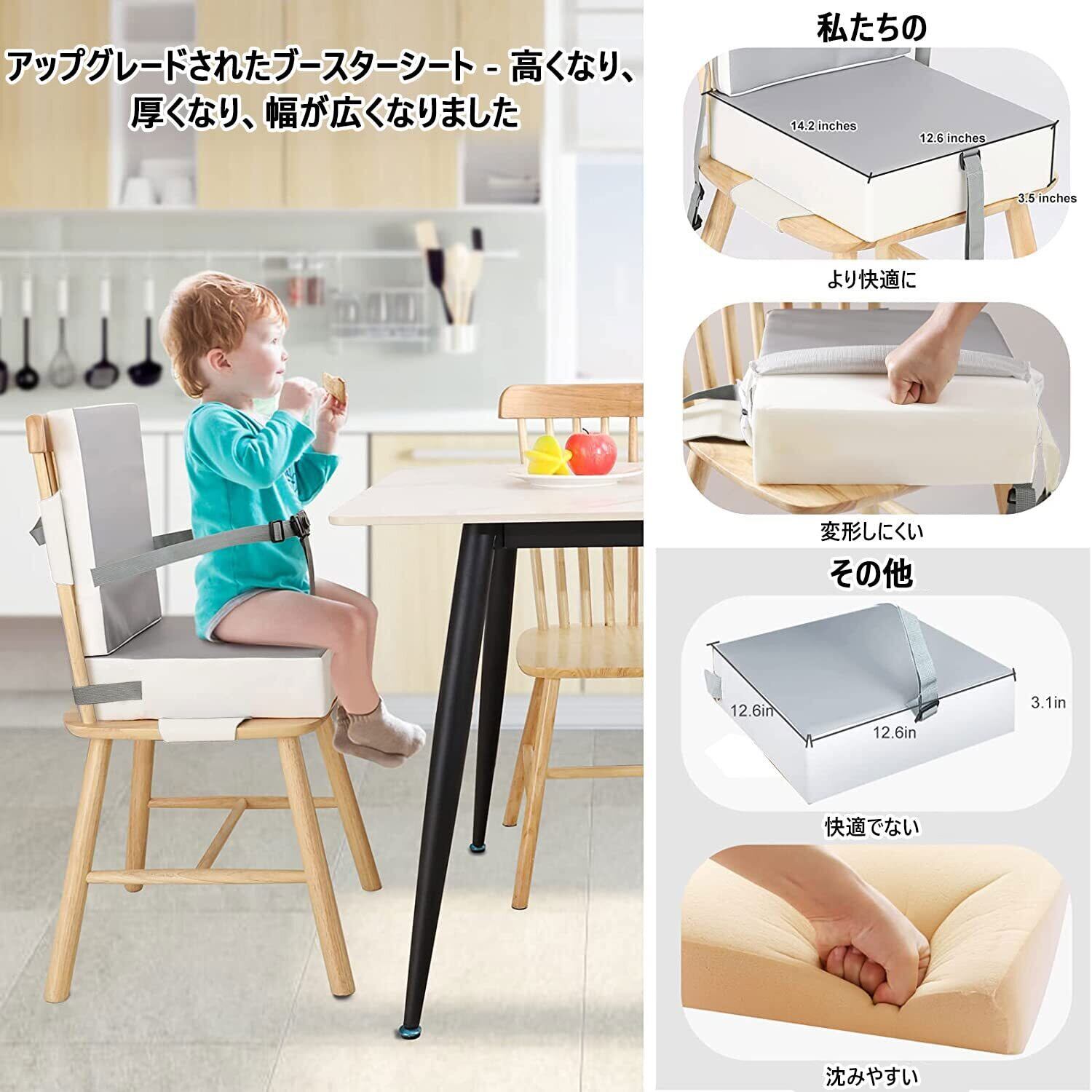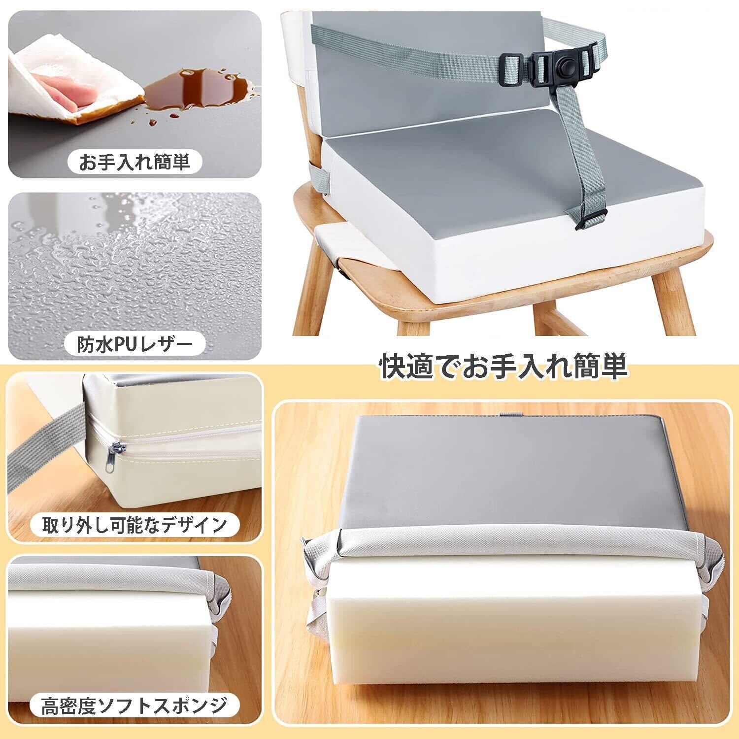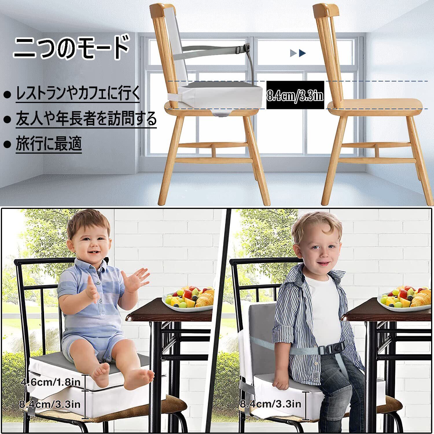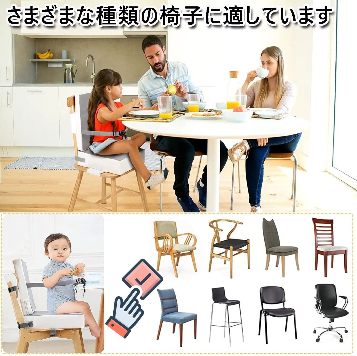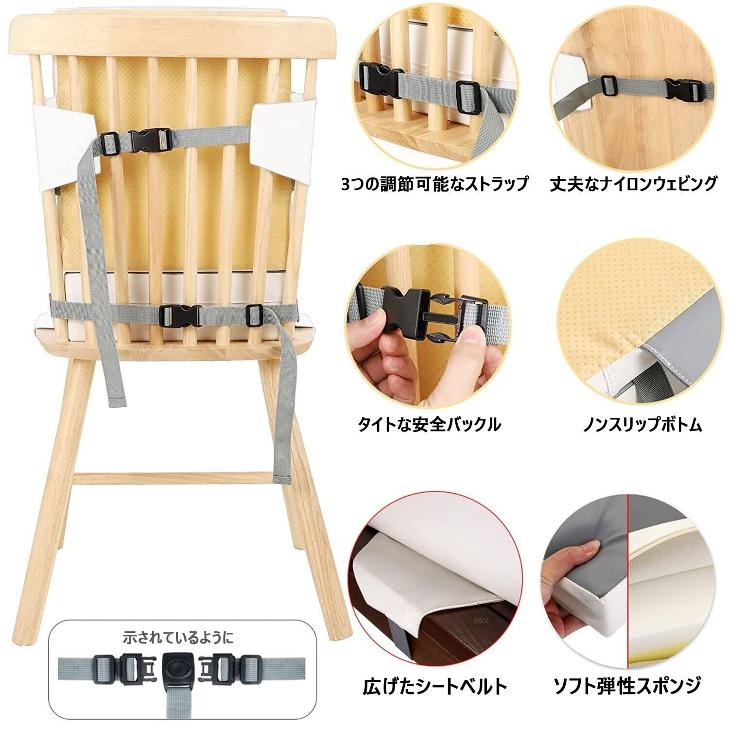 高さ調節お子様用クッション, こどもお食事座布団 ダイニング チェア クッション ポータブル 取り外し可能 ハイチェア ブースター キッズ用 ウォッシャブル い チェア シート パッド マット 布 ストラップ (背もたれ付き)