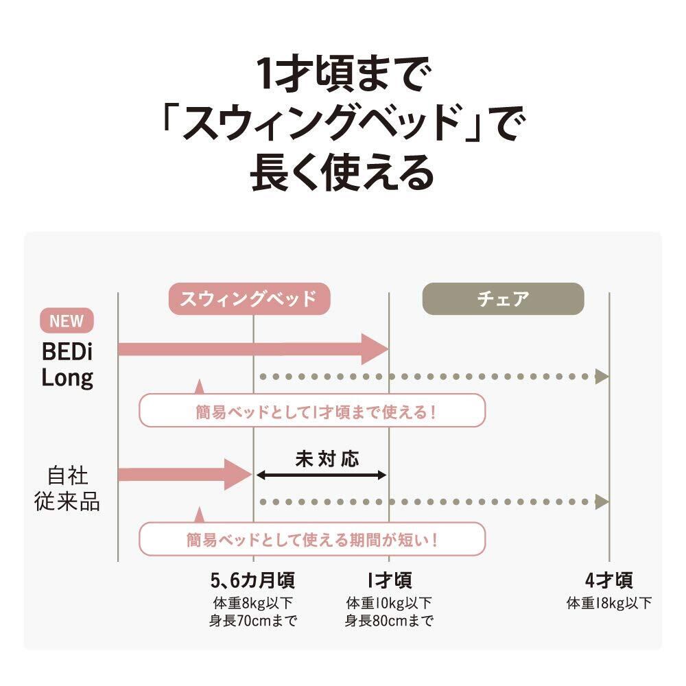 新しくなった「ネムリラBEDi Long」は、進化したオートスウィングとひろびろスペースで、より長いスウィング期間を実現しました。