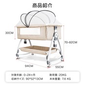 【商品紹介】対象年齢:新生児0~24ヶ月 材質: 高炭素鋼+綿 重量:7.6kg 耐荷重:20kg 展開サイズ:94×55×82cm 収納:90×52×13cm ベビーベッドセット内容:本体、マット、蚊帳、収納バスケット、収納袋。