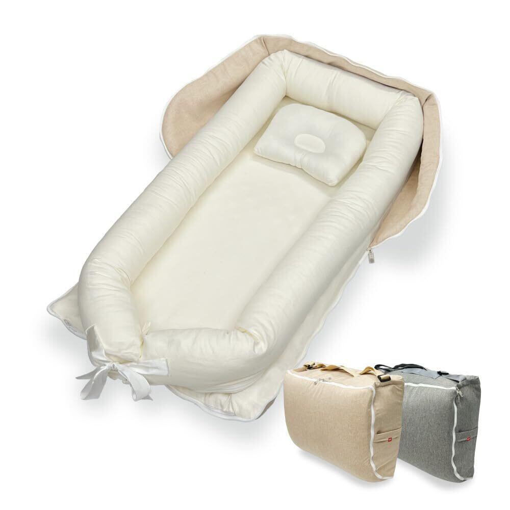 ベッドインベッド すやみん izxi いつくし 持ち運び 折りたたみ 乳幼児用ベッド 乳児ベッド ベビーベッド 新生児 赤ちゃん ベビー布団 ベビーギフト 出産祝い 添い寝 寝返り防止クッション ベビーネスト (ベージュ)