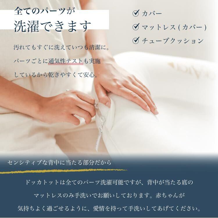 すべてのパーツが取り外して洗濯可能。赤ちゃんが使うものだから、いつでも清潔に保てます。
