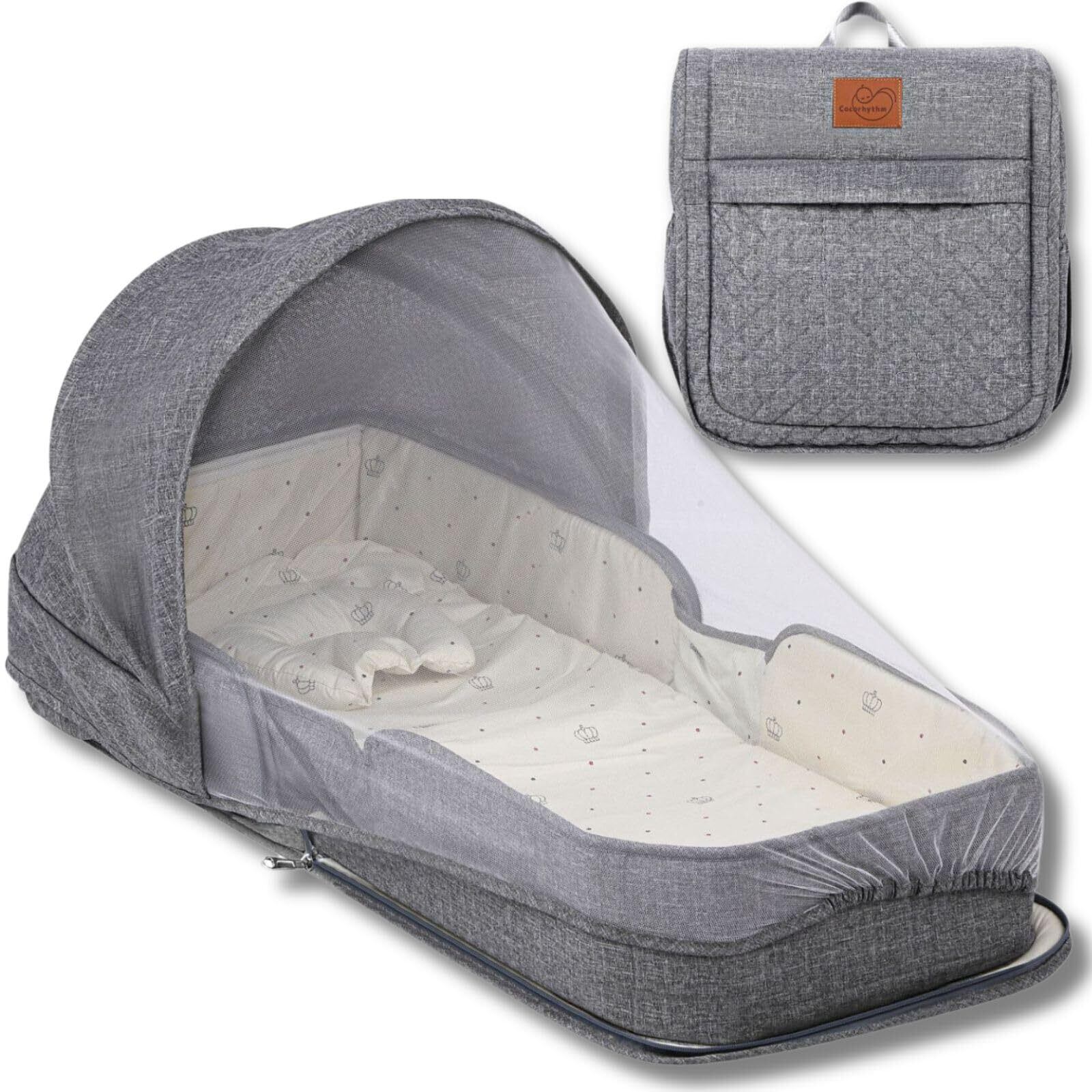 ココリズム (Cocorhythm) ベッドインベッド ベビーベッド クーファン 【現役保育士監修】 ポータブル 折りたたみ式 寝返り防止 新生児 携帯型ベビーベッド (グレー)