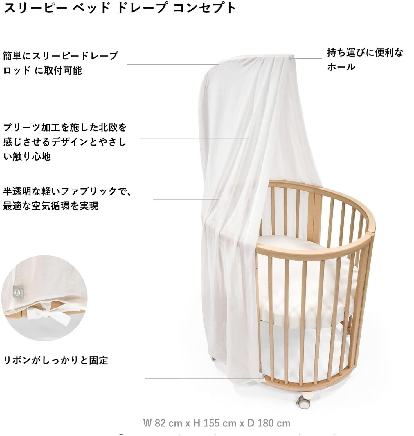 Stokke(ストッケ) スリーピー ベッド ドレープ スタイリッシュ 半透明 空気循環 安眠 デザイン 肌触りの良い 洗濯可能 取付可能