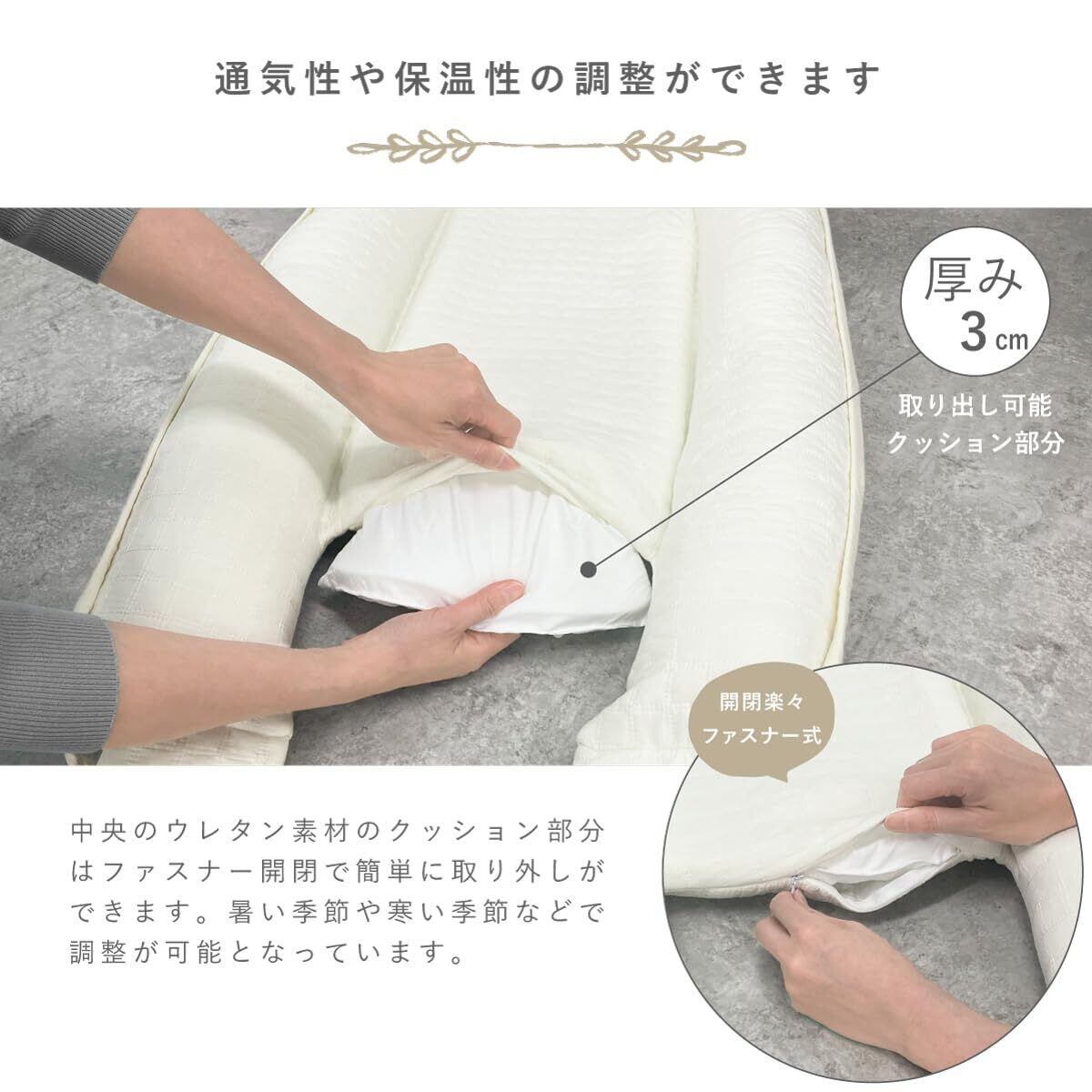 【お洗濯OK】 お家でお洗濯できます。 すべて丸洗いできて毎日清潔。中央のウレタンも取り出し可能です。 ※中央のウレタンもお洗濯OKです。