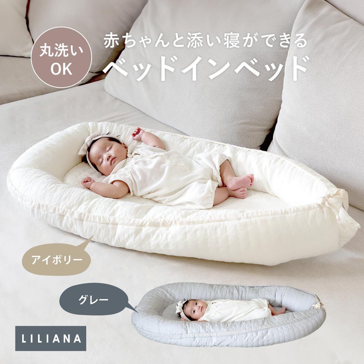 ベッドインベッド 赤ちゃん ベットインベット 新生児 ベビーベッド ベビー布団 出産祝い グレー 寝返り防止 添い寝 LILIANA/リリアナ (グレー)