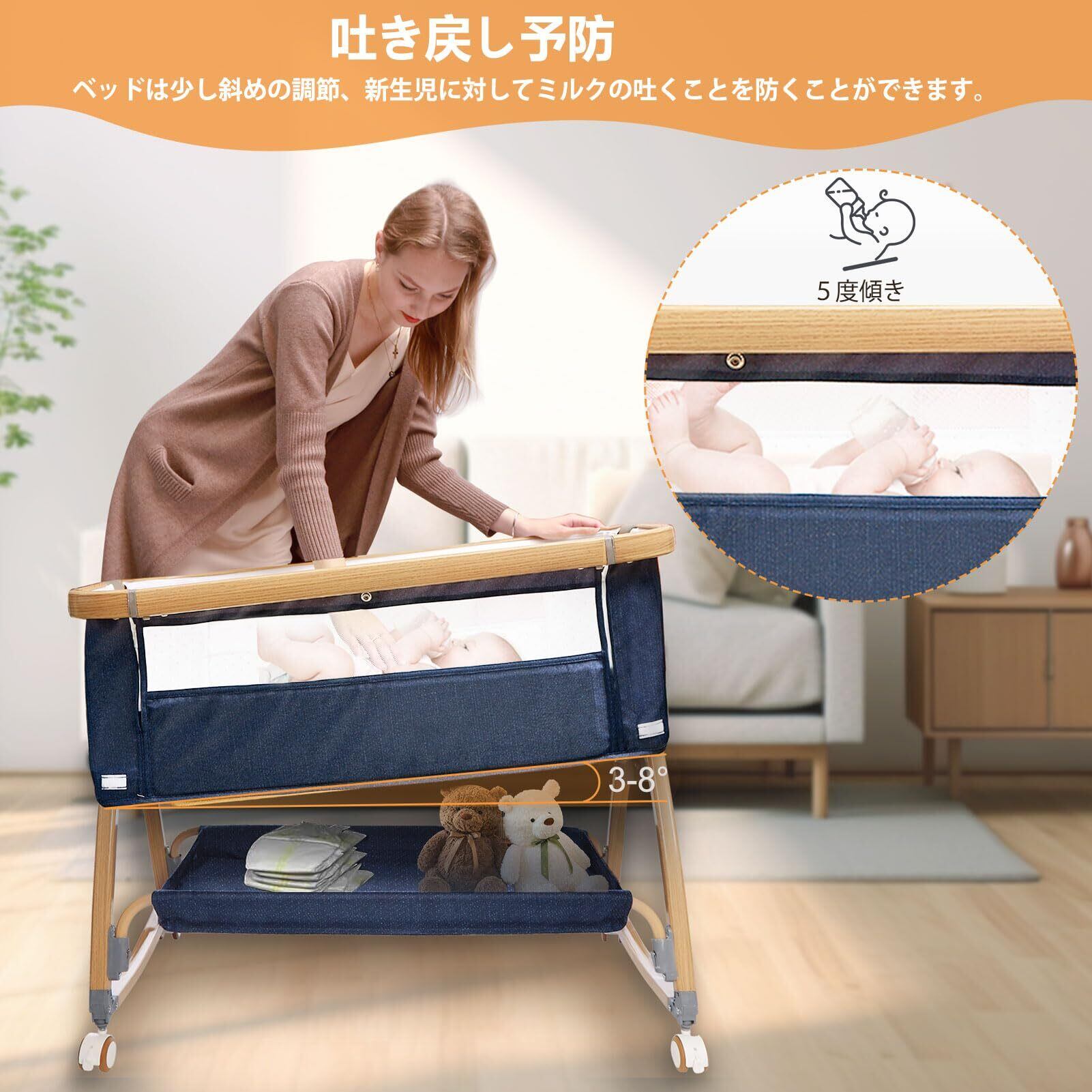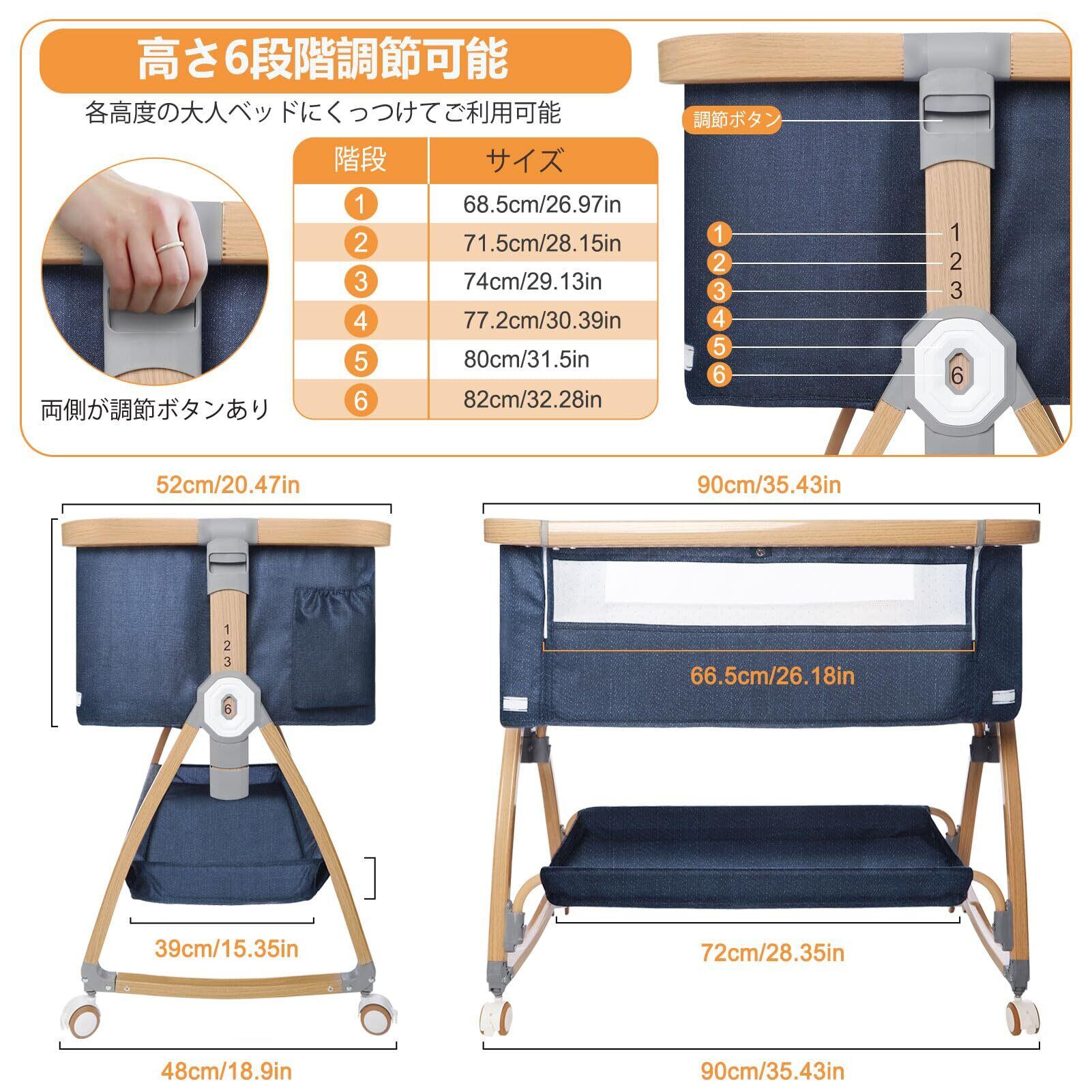 2025最新 ベビーベッド 添い寝ベッド 折畳み 高さ6段調節可能 乳児用ベッド 新生児ベッド ゆりかご 多機能 コンパクト 持ち運びしやすい 通気性 洗濯可能 吐き戻し予防 組み立て不要 0ヶ月~24ヶ月赤ちゃん寝具 babybed 収納かご/マットレス/固定ベルト/蚊帳/キャスター付き 出産祝い プレゼント SGS認証済 日本語取扱説明書付き (木目調フレーム, ブルー)