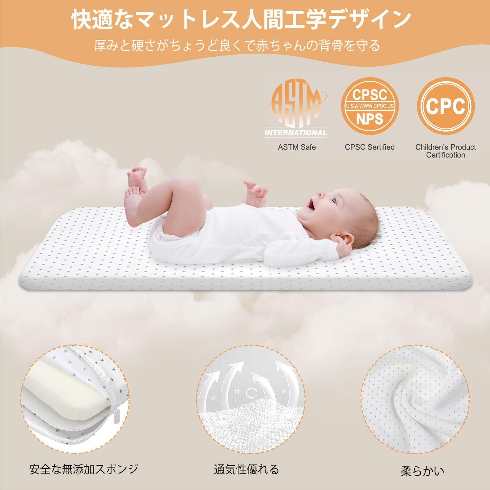【安全で上質な素材】頑丈な高炭素鋼製のフレームを採用しており、安定性と安全性も強い!通気性優れるリネン、気持ちよくて肌に優しい、内側にはやわらかい肌にやさしい生地とマットレスで、赤ちゃんのお肌を守ります。両側のメッシュデザインは空気の循環を確保するだけでなく、赤ちゃんの状態をよく観察することができます。カバーは取り外せ、水で丸洗いが可能なので、清潔に保つことができます。