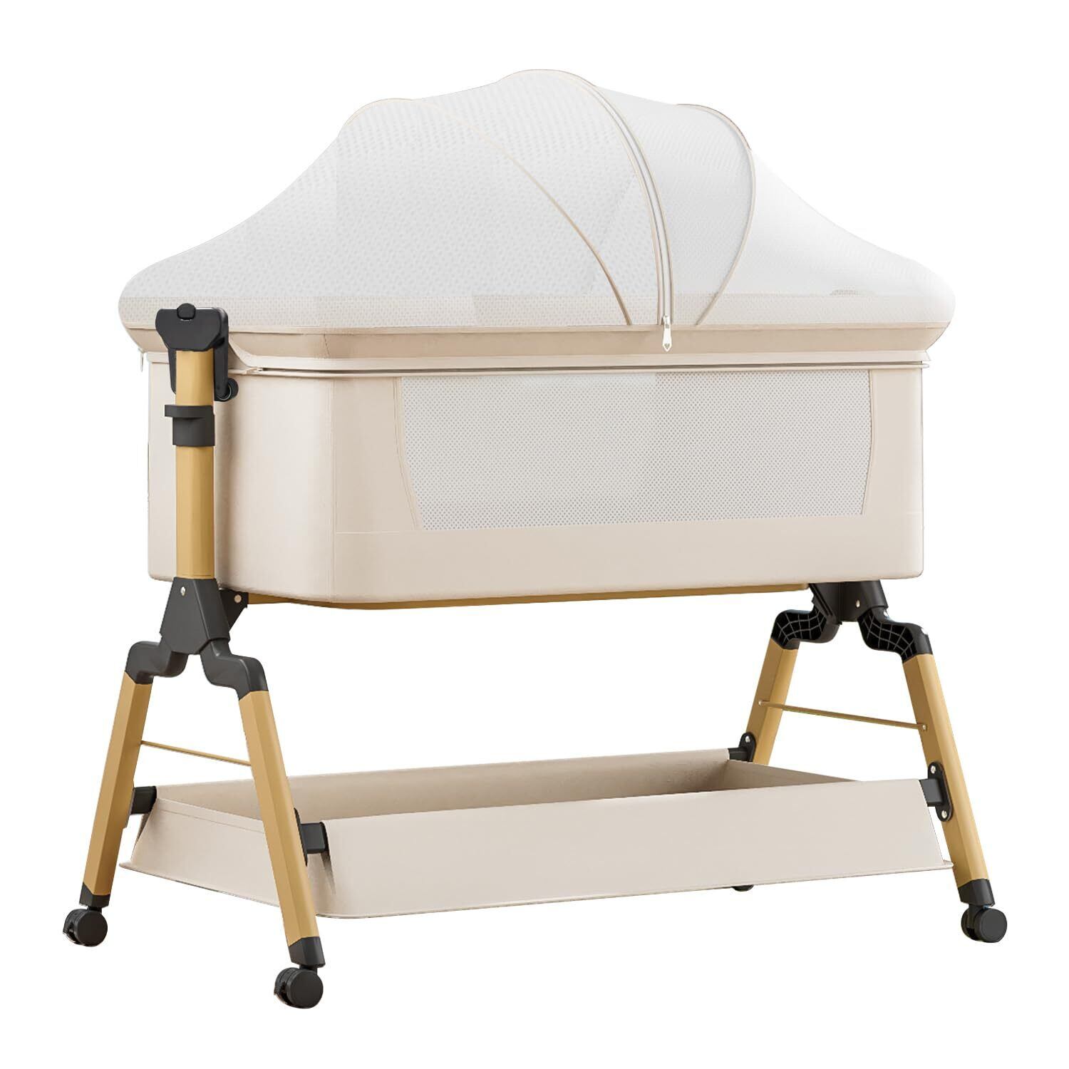 【数量限定】ベビーベッド 添い寝 折りたたみ ハイローベッド 高さ3段調節可能 睡吐防止 新生児 乳児用 多機能 組み立て簡単 収納便利 揺りかご 蚊帳 キャスタ付き 持ち運び メッシュ 通気性 洗濯可能 赤ちゃん 寝具 出産祝い 0ヶ月 ~ 24ヶ月