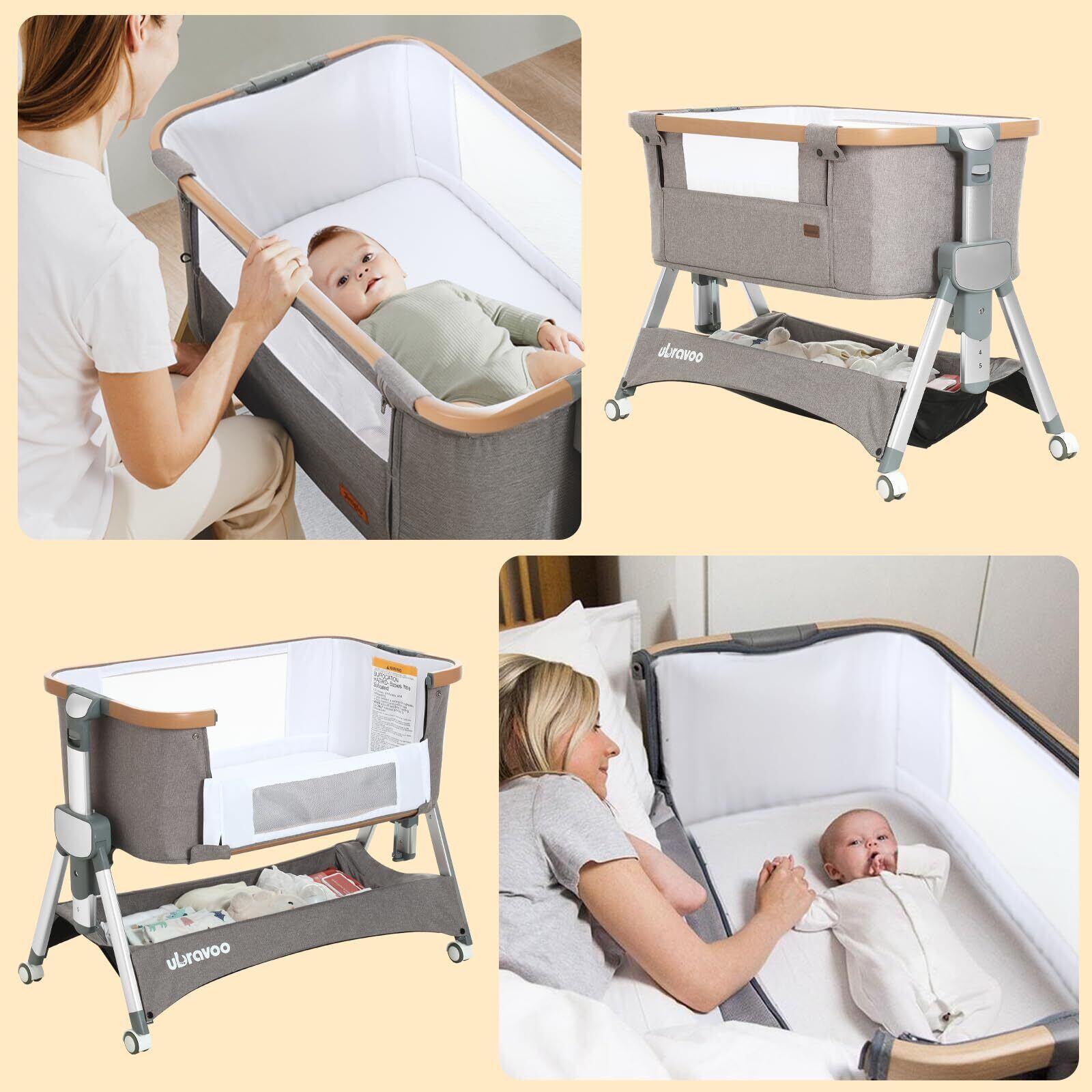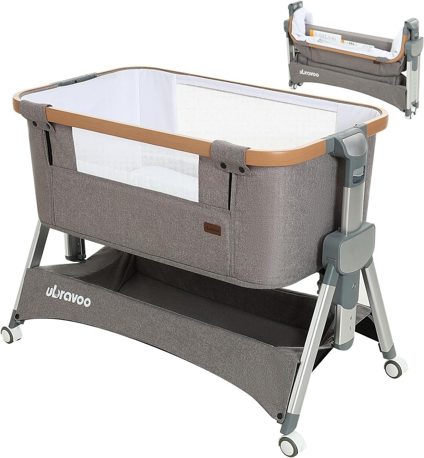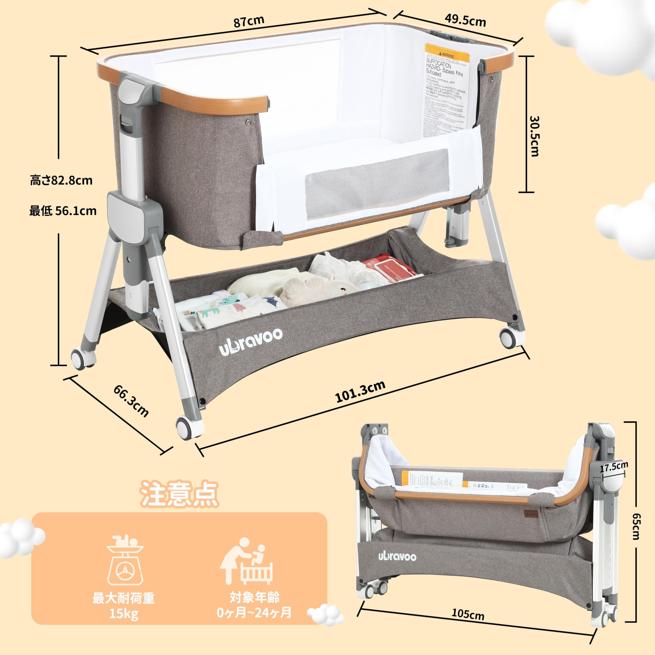 UBRAVOO 2024新型 ベビーベッド 添い寝 折りたたみ 組み立て不要 添い寝ベッド 睡吐防止 高さ5段調節可能 コンパクト 通気性 収納便利 収納かご・マットレス・固定ベルト キャスタ付き 新生児ベッド 乳児用ベッド 赤ちゃんベッド 出産祝い プレゼント 0ヶ月~24ヶ月
