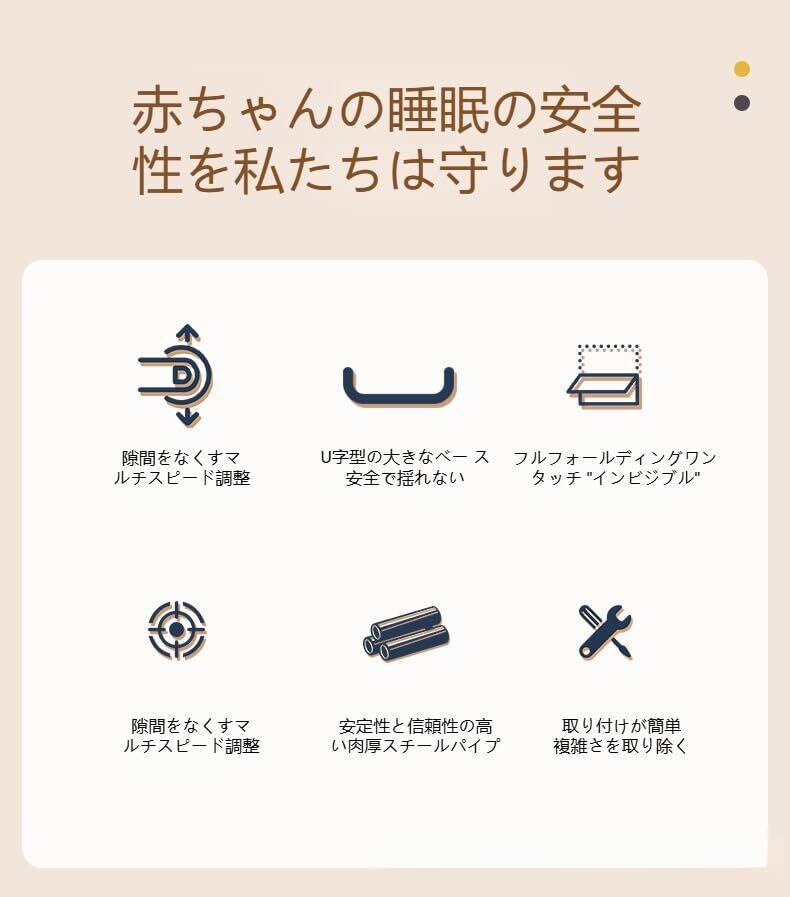 1 取り付けが簡単で 厚くなったパイプとマルチ調整により 赤ちゃんが安全に眠れるよう 折りたたみ式で収納しやすく 自宅やでの使用に適しています