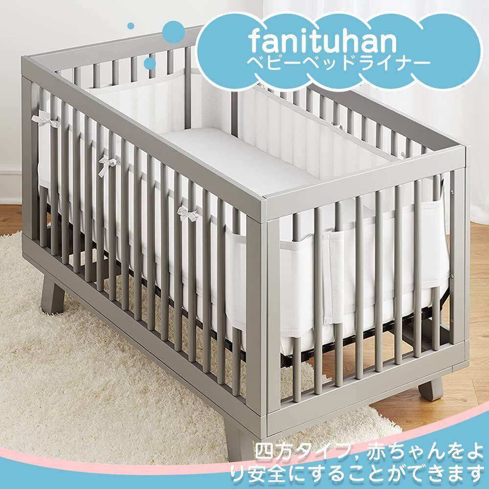 【新春セール】fanituhan ベビーベッド ガード ベビーベッドライナー ベッドガード 赤ちゃん ベッドバンパー クッション 通気性よい ベッドフェンス 四方タイプ サイドガード 長辺340cm+短辺160cm 取り付け簡単 幼児用 安全性 転落防止 収納便利 周辺衝突防止 洗濯可能 出産祝い 誕生日プレゼントに (ホワイト)