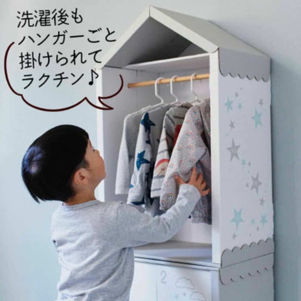 ③軽量&アレンジしやすく長く使える…幼児期は自分でハンガーを掛ける、取るの練習に。不用になったらリサイクルゴミに出せるから、環境にもやさしい